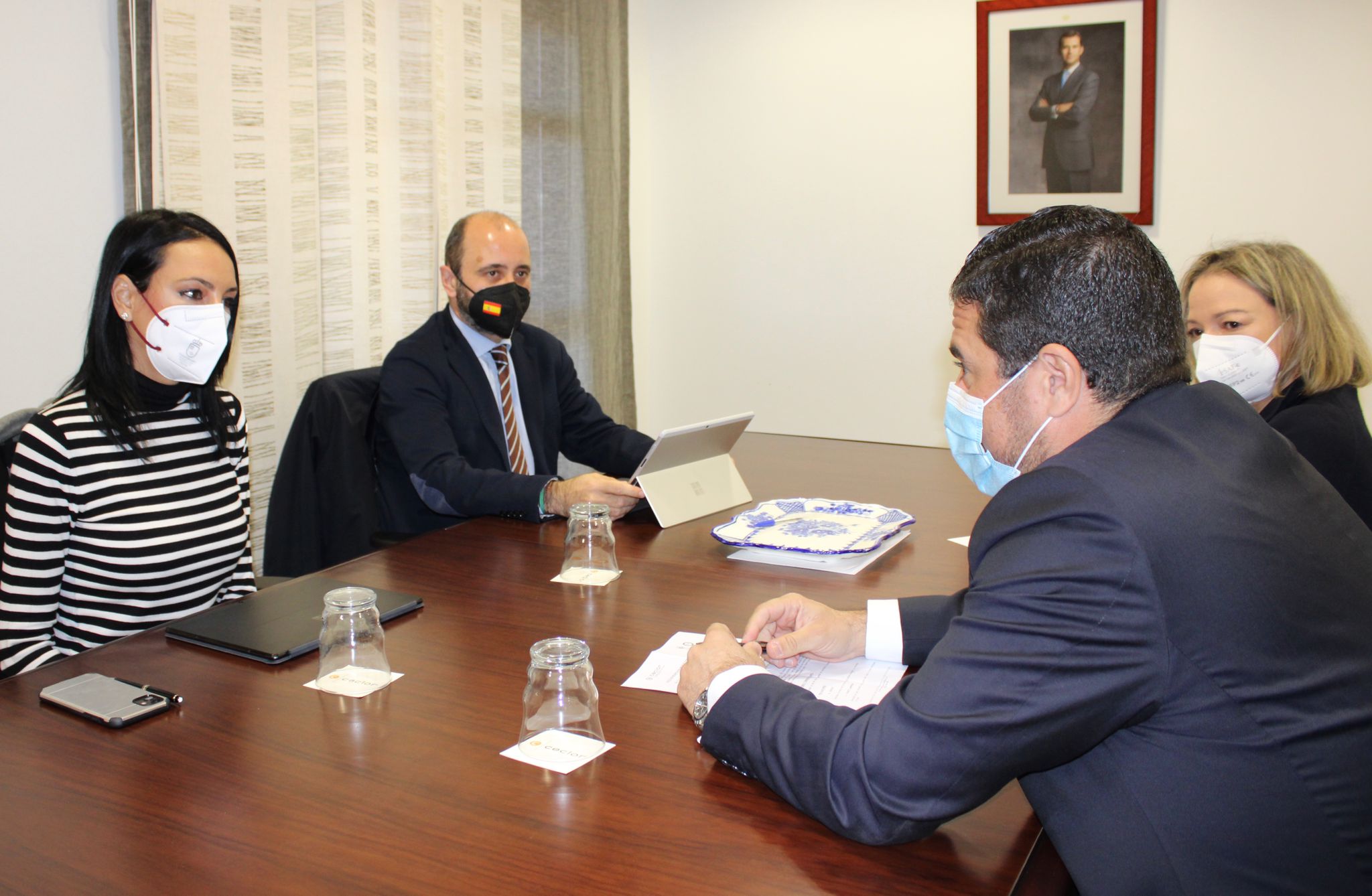 Imagen de una reunión de la consejera Valle Miguélez y el director del Instituto de Fomento con los responsables de Ceclor (Confederación Comarcal de Organizaciones Empresariales de Lorca)