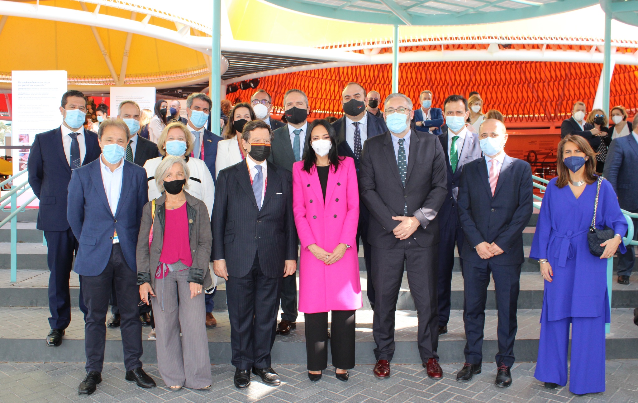 La consejera de Empresa, Empleo, Universidades y Portavocía, Valle Miguélez, inauguró la Semana de la Región de Murcia en la Expo de Dubái, junto al secretario general de la Consejería de Agua, Agricultura, Ganadería, Pesca y Medio Ambiente, Víctor Martínez; el embajador de España en Emiratos Árabes Unidos (EAU), Íñigo de Palacios, y representantes de organismos empresariales de la Región.