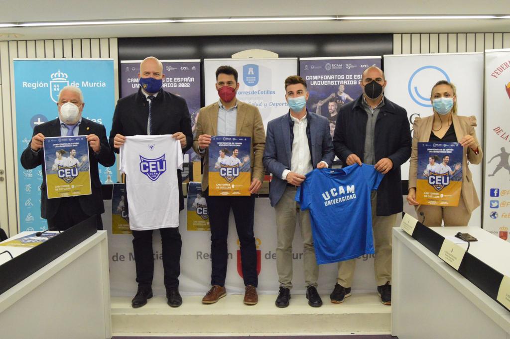 El director general de Deportes, Francisco Javier Sánchez, asistió hoy a la presentación de estas competiciones junto con el director de Deportes de la UCAM, Pablo Rosique, y alcalde de las Torres de Cotillas, Francisco Jesús López Manzanera.