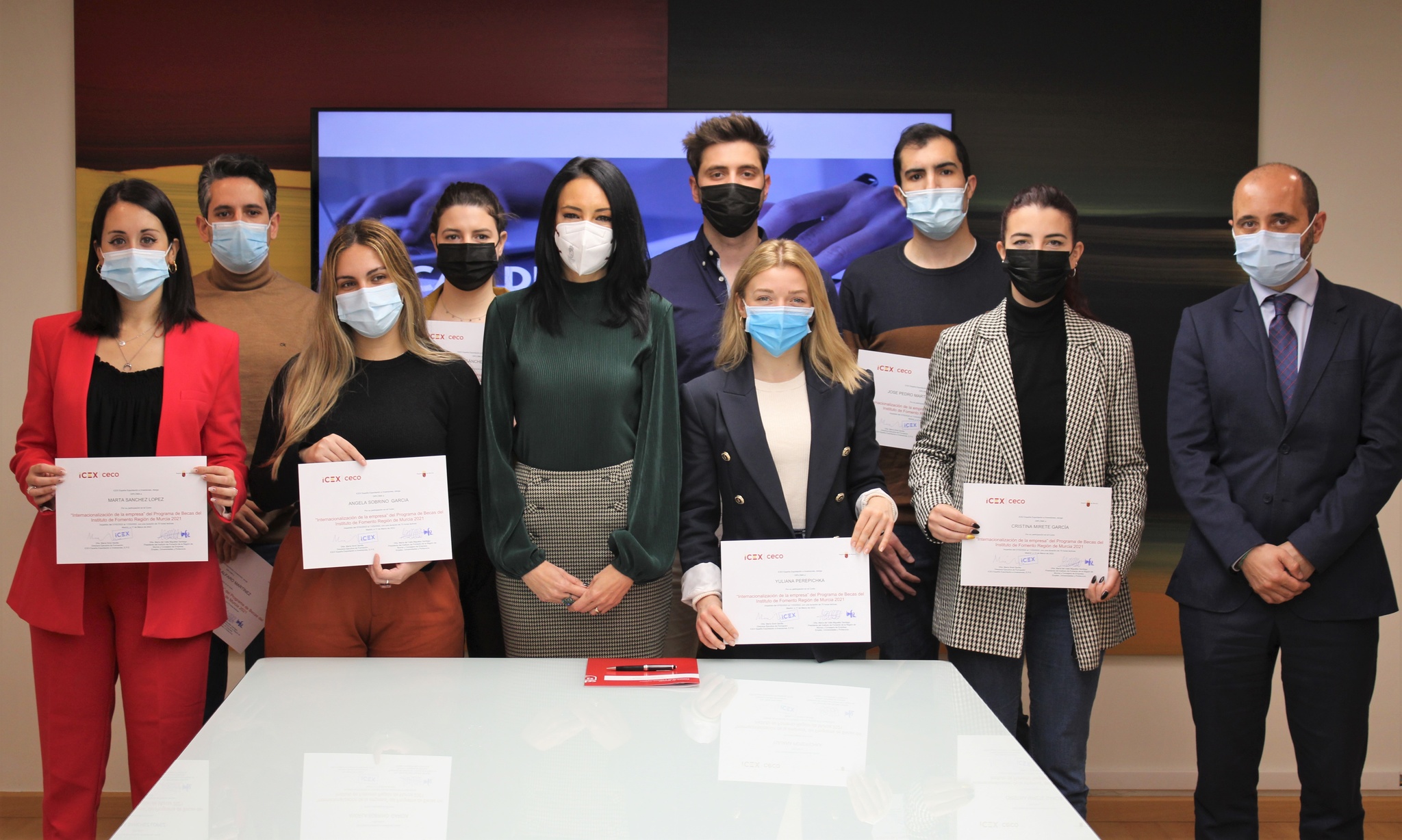 La consejera de Empresa, Empleo, Universidades y Portavocía, Valle Miguélez, recibió a los 10 estudiantes que han recibido una Beca de Internacionalización del INFO.