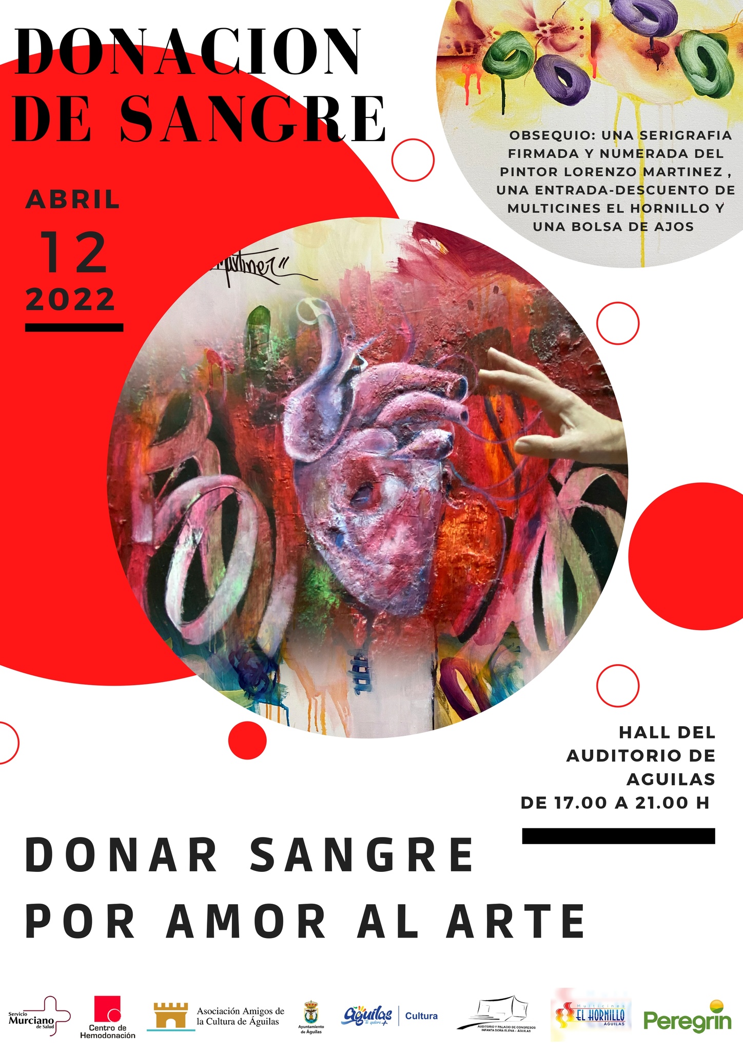 Cartel de la campaña 'Donar sangre por amor al arte' que tendrá lugar el martes 12 de abril en Águilas.