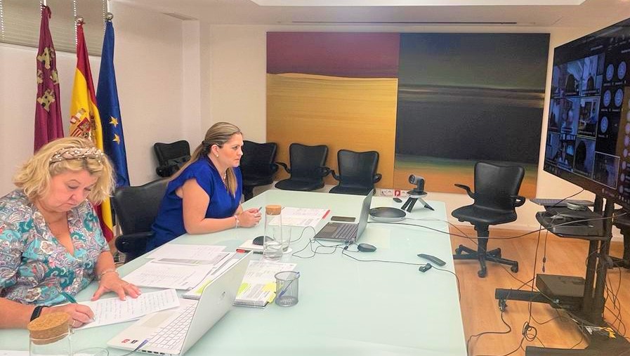 La directora general de Consumo y Artesanía, Sonia Moreno, durante la reunión mantenida hoy por videoconferencia