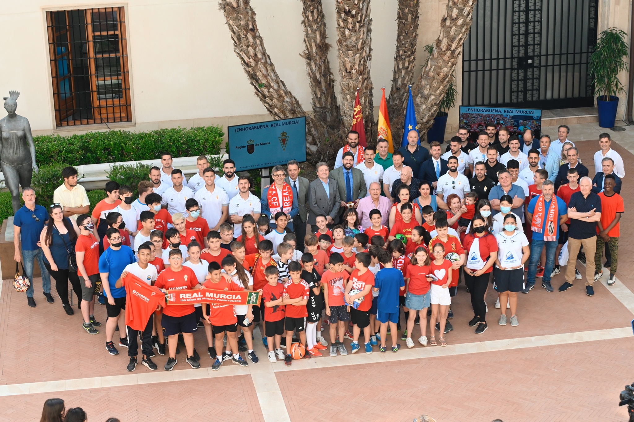 El máximo responsable autonómico también elogió la labor de los directivos del club, “que son murcianistas y que han aportado trabajo y dinero para que este sueño no sólo siga vivo, sino que además consiga triunfos”. Finalmente, afirmó que “la meta de 2022 está cumplida, pero el objetivo del Real Murcia es mucho mayor”, porque “ya no hay retos que parezcan imposibles de alcanzar para este club”.