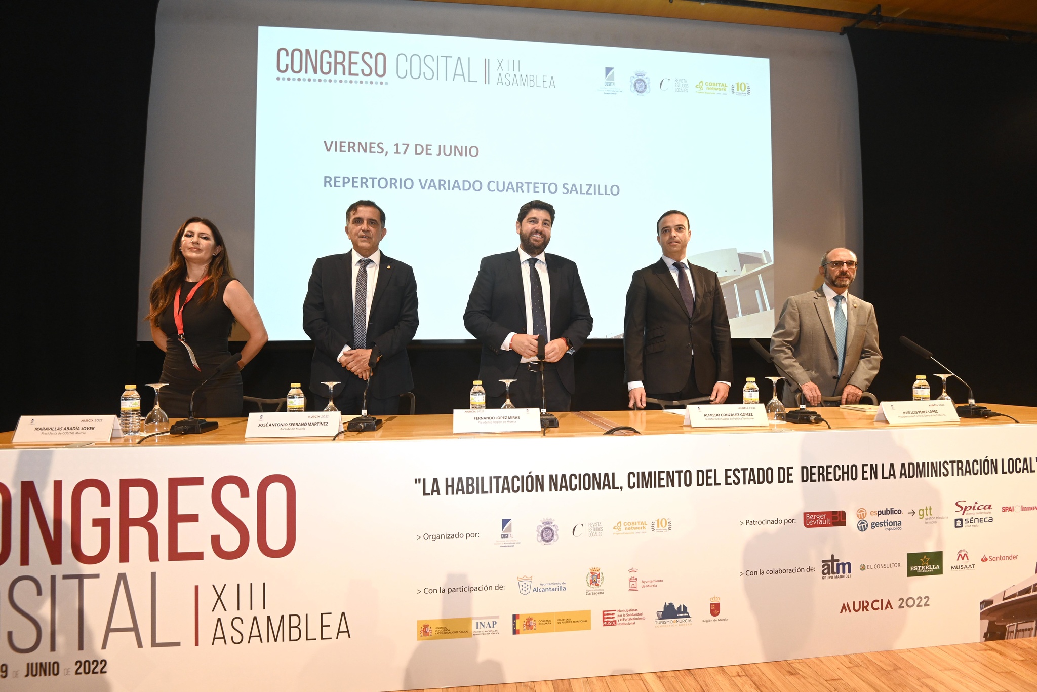 López Miras trasladó al colectivo el “total respaldo del Gobierno regional” en sus reivindicaciones, durante la inauguración del Congreso Nacional del Consejo General de Secretarios, Interventores y Tesoreros de Administración Local (Cosital). Esta cita de referencia para estos funcionarios de las corporaciones municipales tiene lugar hasta el 19 de junio en Murcia, tras su suspensión en 2020 a raíz de la pandemia. El evento incluye talleres, coloquios, mesas redondas y la celebración de la XIII Asamblea de Cosital.