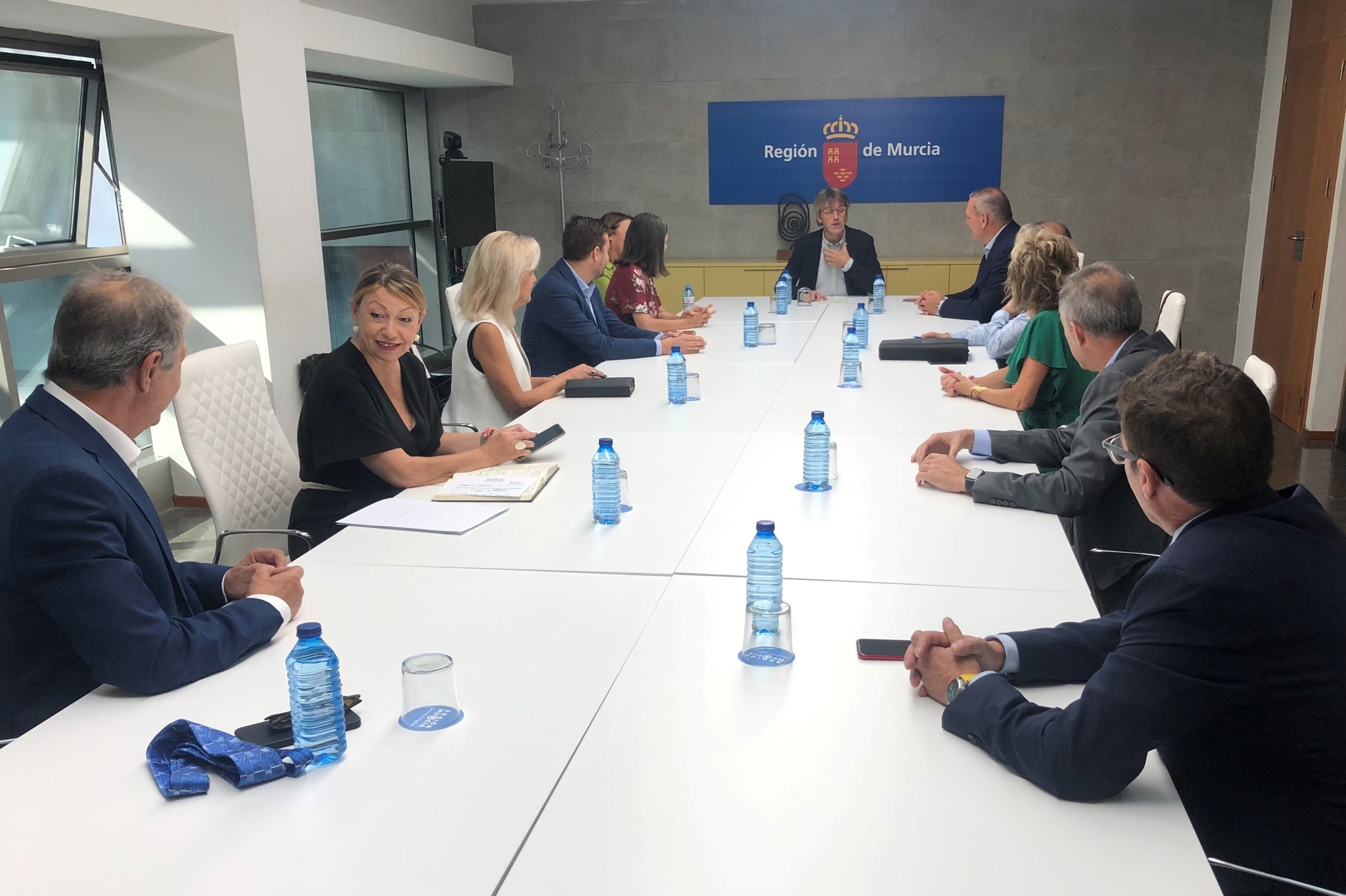 Imagen de la reunión del consejero de Economía, Hacienda y Administración Digital, Luis Alberto Marín, con representantes de las entidades que han suscrito el convenio tipo de colaboradores sociales