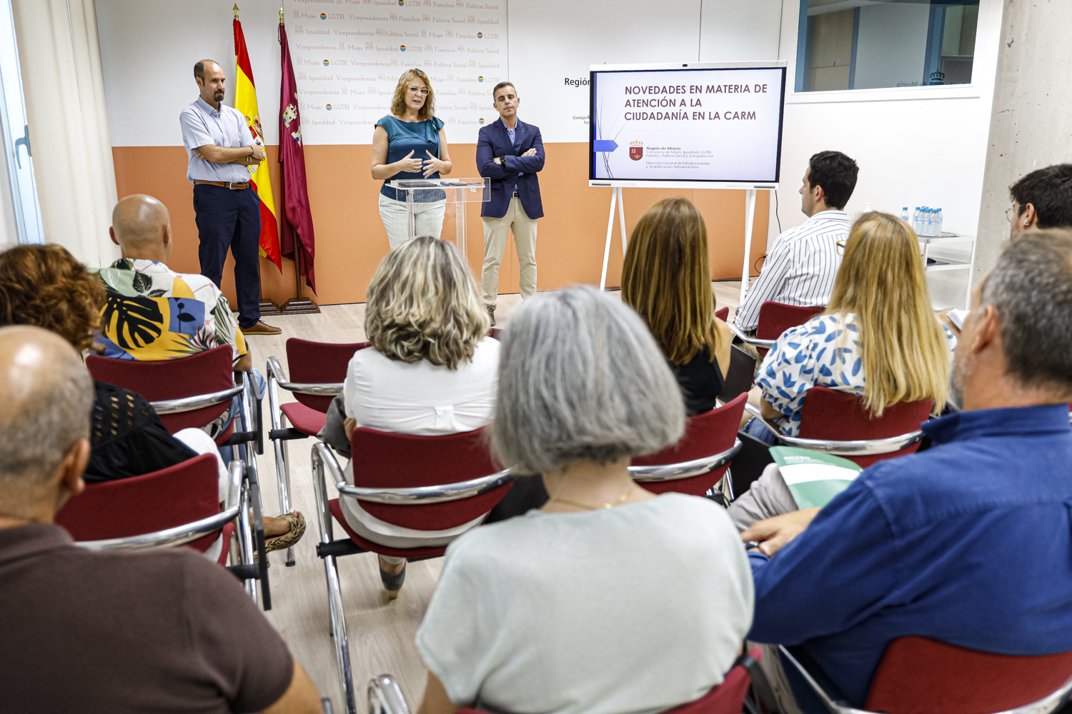 La consejera de Mujer, Igualdad, LGTBI, Familias, Política Social y Transparencia, Isabel Franco, presentó hoy las novedades en materia de atención a la ciudadanía que promueve su Departamento a través de la Dirección General de Modernización y Simplificación Administrativa