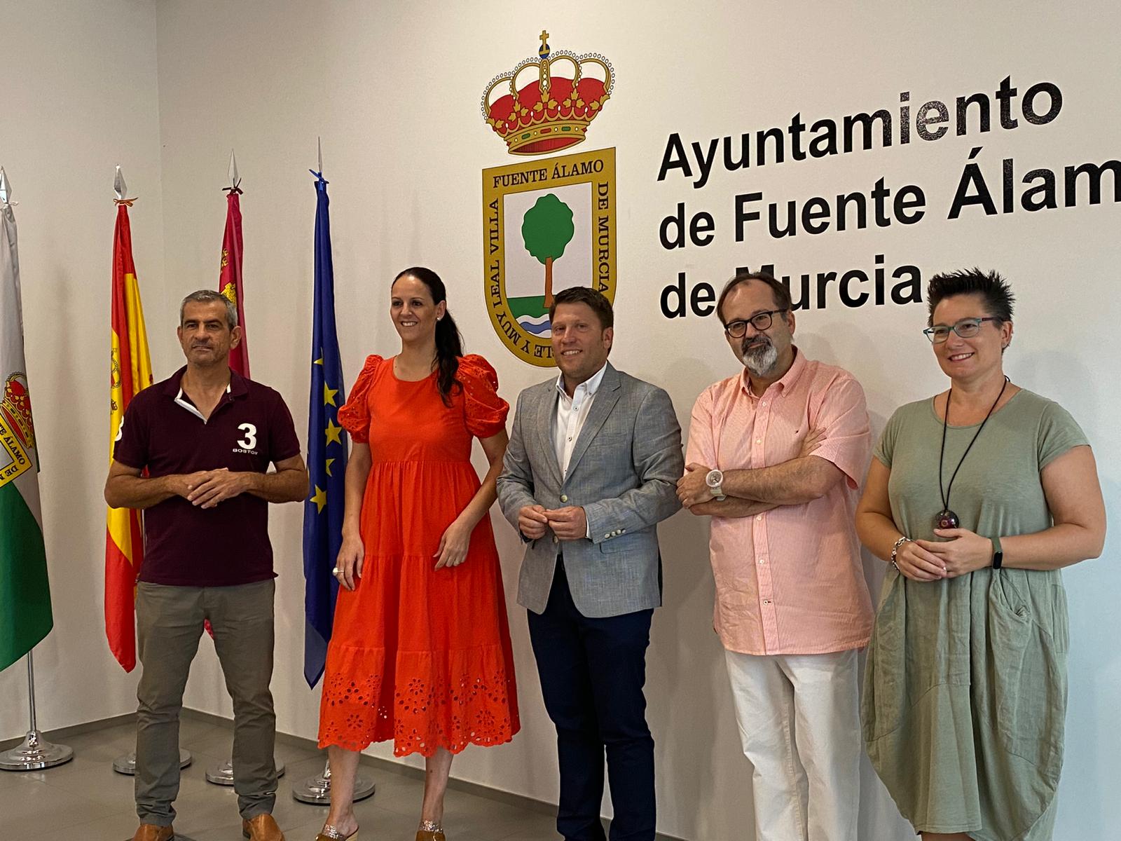 , Juan Pedro Vera (c), y la alcaldesa de Fuente Álamo, Juana María Martínez (2i), en el acto de presentación del proyecto
