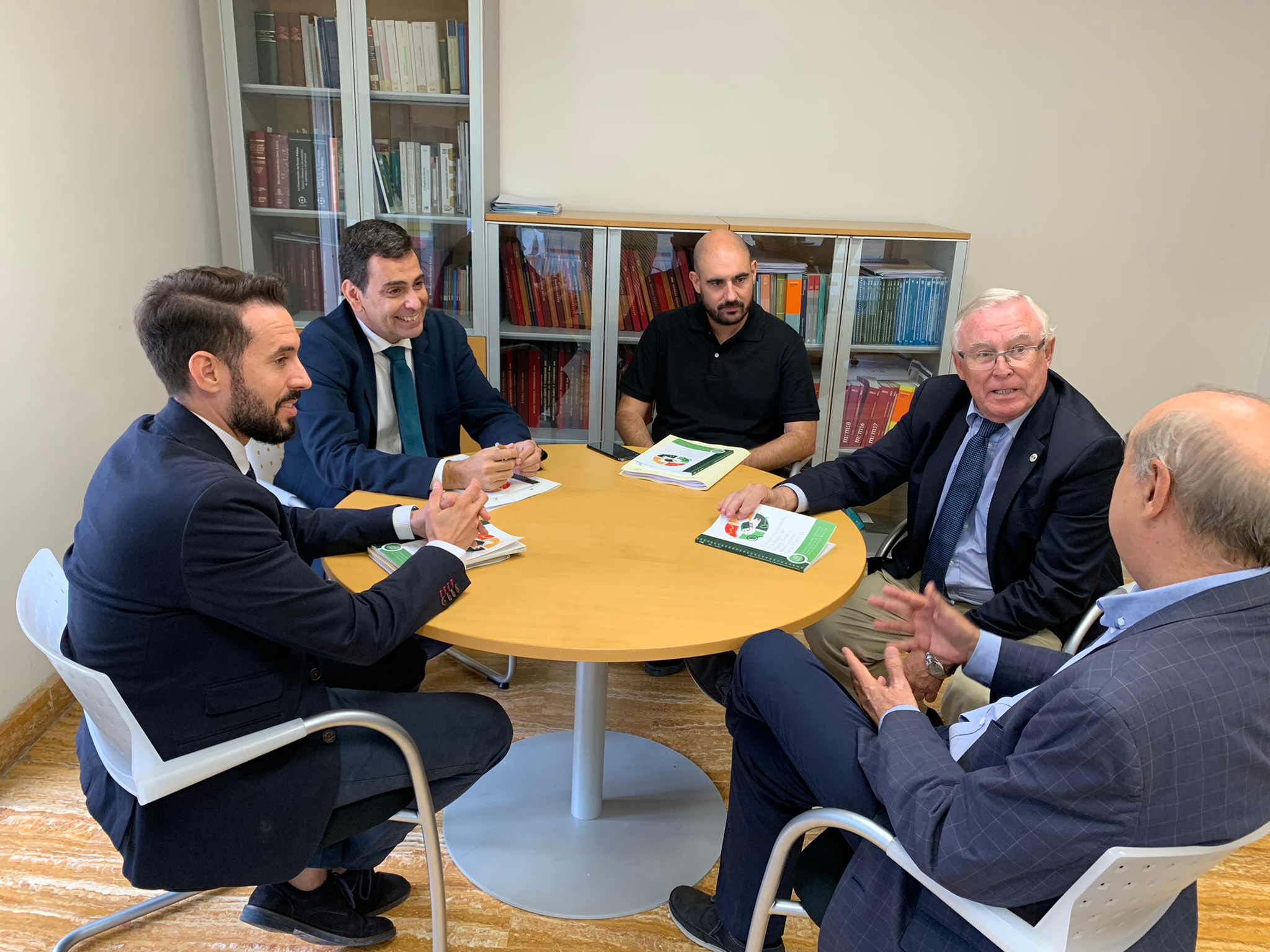 (i-d) El director general de Vivienda, José Francisco Lajara; el consejero de Fomento e Infraestructuras, José Ramón Díez de Revenga; el profesor universitario Juan Pedro Sanz; el presidente del CES, José Antonio Cobacho; y el secretario general en funciones del CES, Miguel Martín; durante la reunión mantenida hoy sobre el estudio 'El acceso a la vivienda de la Región de Murcia. Retos y oportunidades tras la COVID-19´ elaborado por el órgano consultivo.