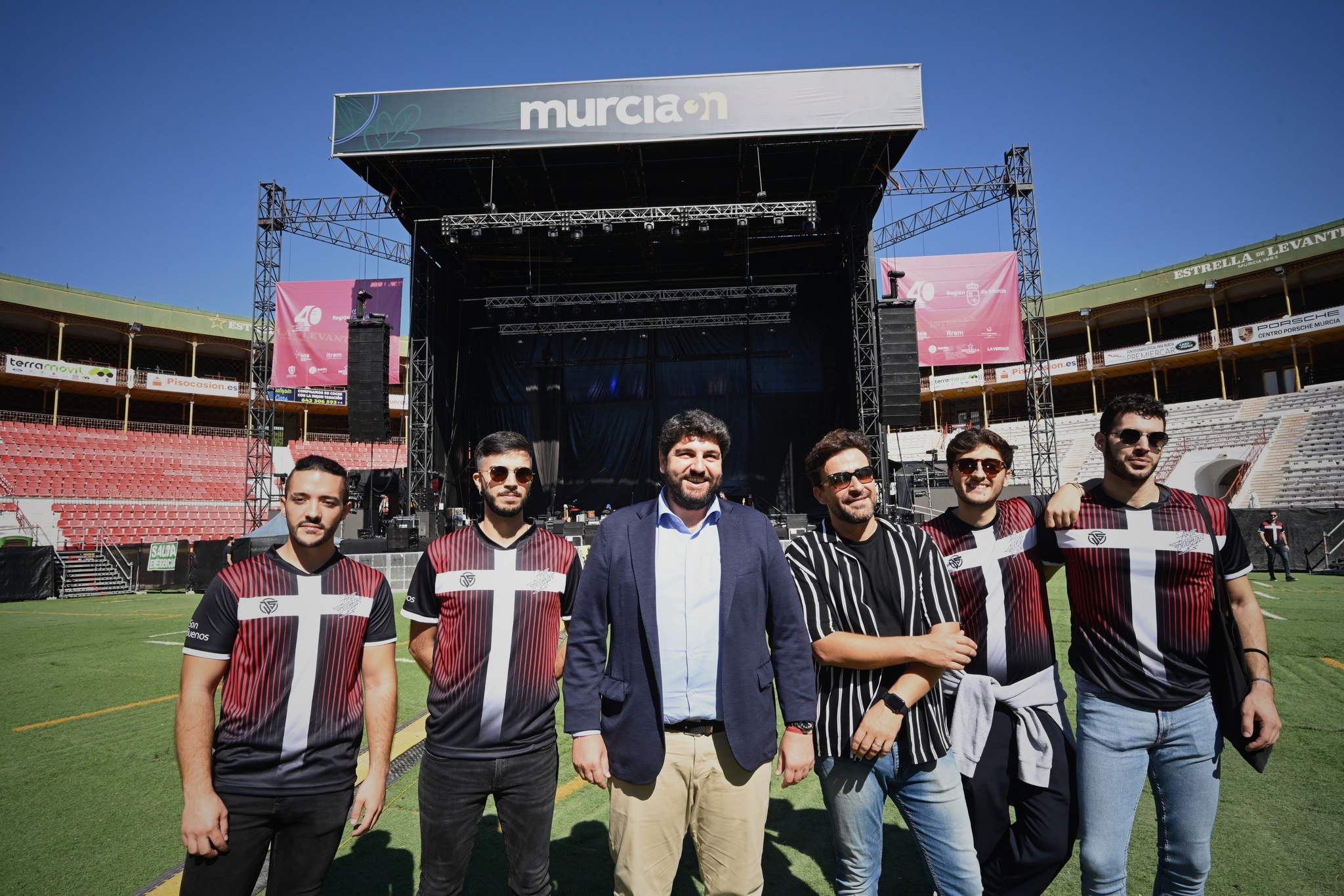 El máximo responsable autonómico también puso en valor que el concierto estará protagonizado sobre el escenario “por aquellos que han sido, son y van a seguir siendo grandes embajadores de la Región de Murcia”, en referencia a las bandas que actuarán: M-Clan, Funambulista, Arde Bogotá y Carmesí.
