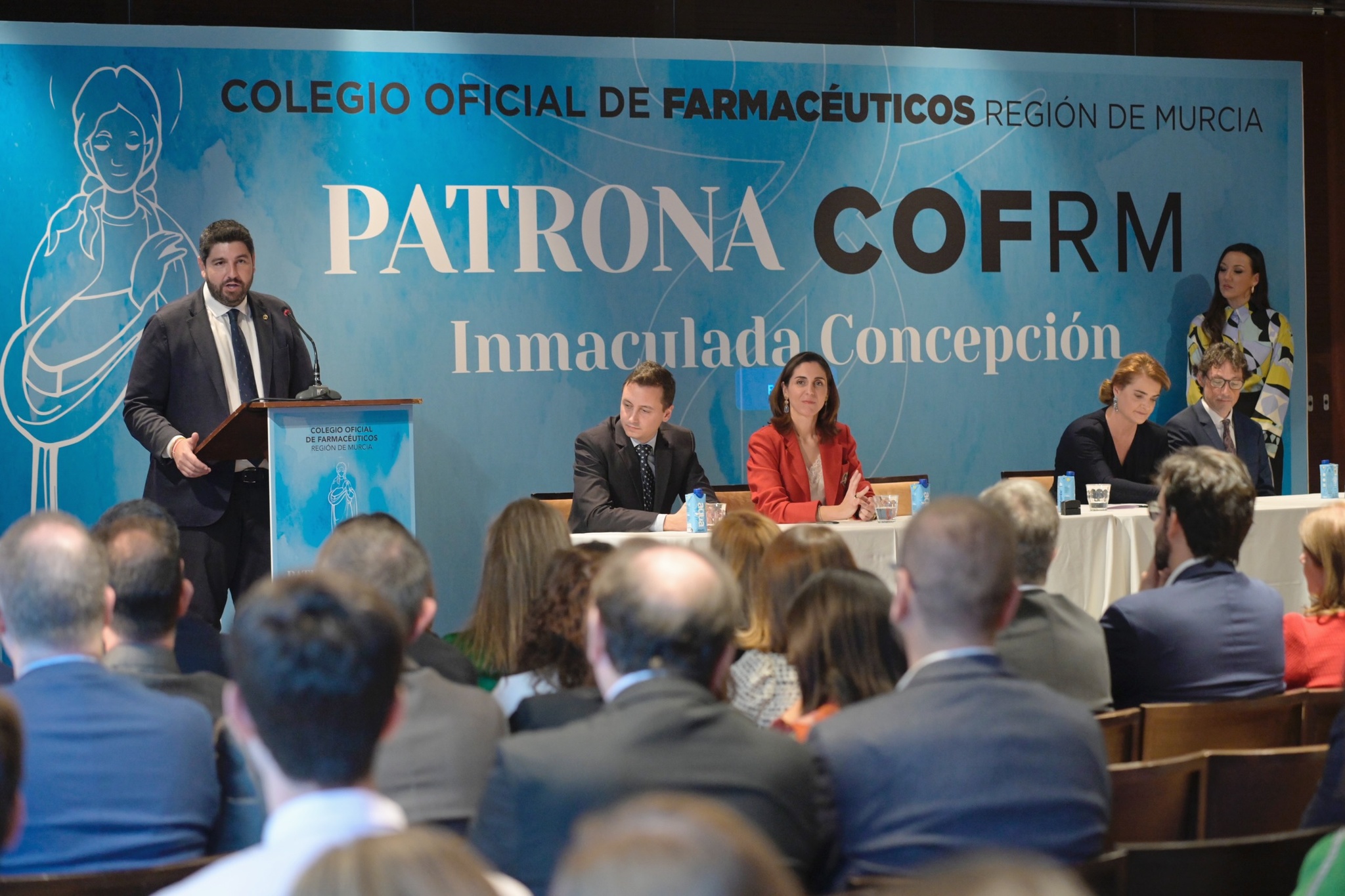 El jefe del Ejecutivo regional, Fernando López Miras, clausuró hoy el acto institucional organizado por el Colegio Oficial de Farmacéuticos de la Región de Murcia (COFRM) con motivo de la festividad de su patrona, la Inmaculada Concepción, en el que resaltó el trabajo desarrollado por este colectivo profesional, “una de las profesiones que garantiza el Estado de Bienestar de la Región de Murcia”.