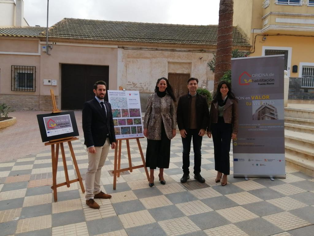 El director general de Vivienda, José Francisco Lajara, y la alcaldesa de Fuente Álamo, Juana María Martínez, durante la presentación del acuerdo para la rehabilitación de viviendas