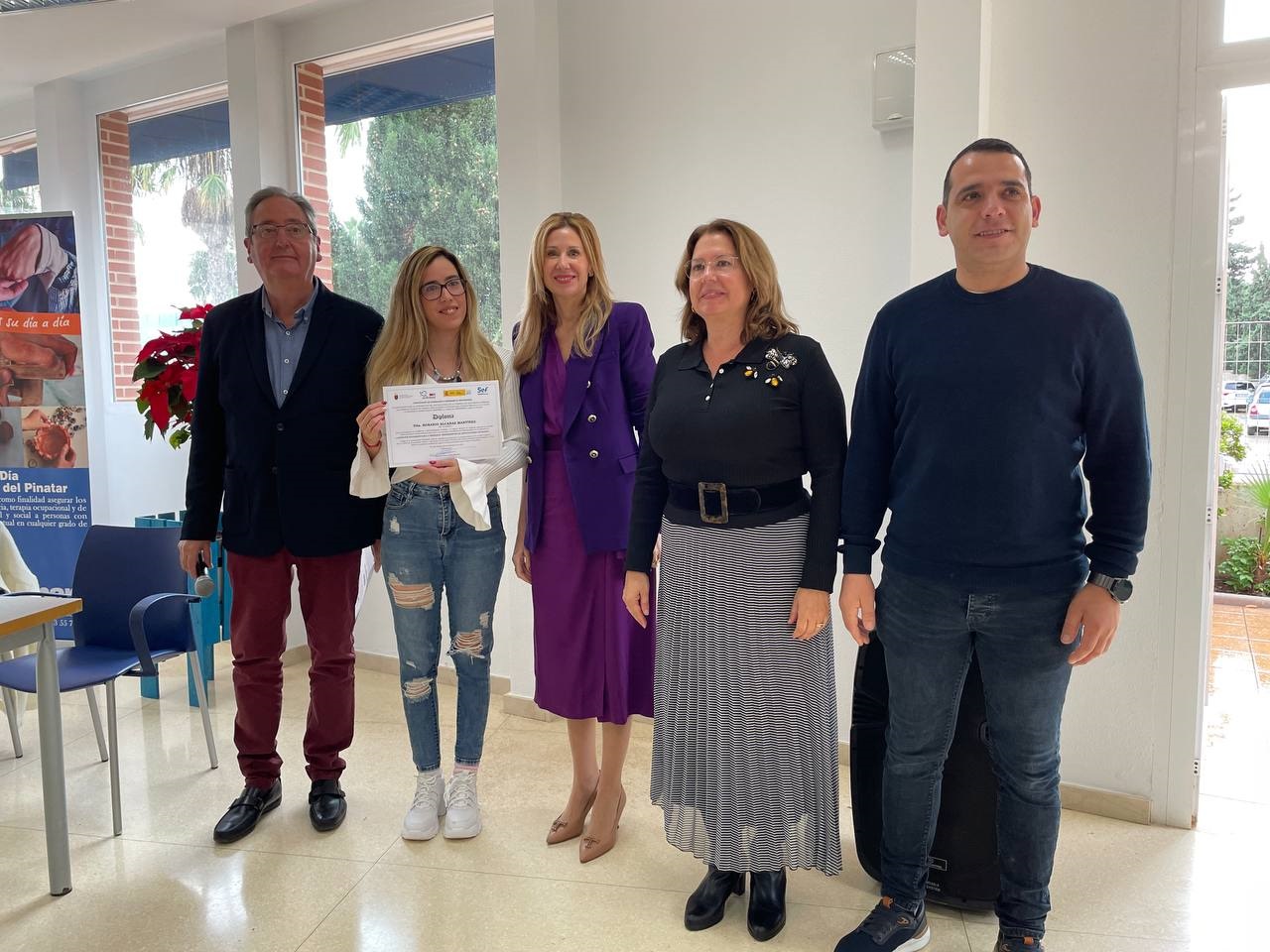 La directora general del SEF, Marisa López, junto con la alcaldesa de San Pedro del Pinatar, Visitación Martínez, entregó los diplomas a los alumnos que han finalizado el curso de 'Atención sociosanitaria a personas dependientes en instituciones sociales'.