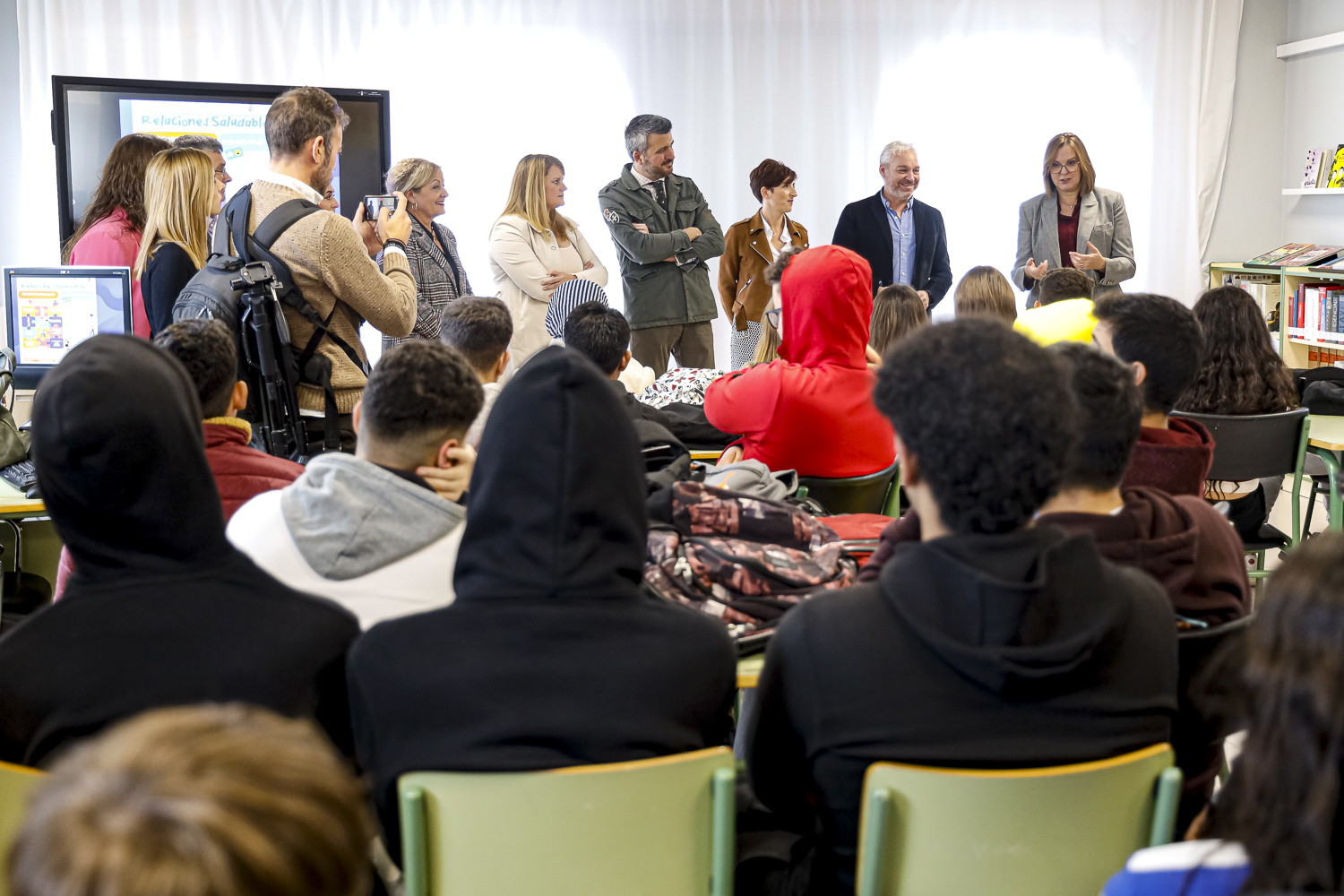 Alumnos en la biblioteca del I.E.S Antonio Hellín de Puerto de Mazarrón durante el taller Preven go!