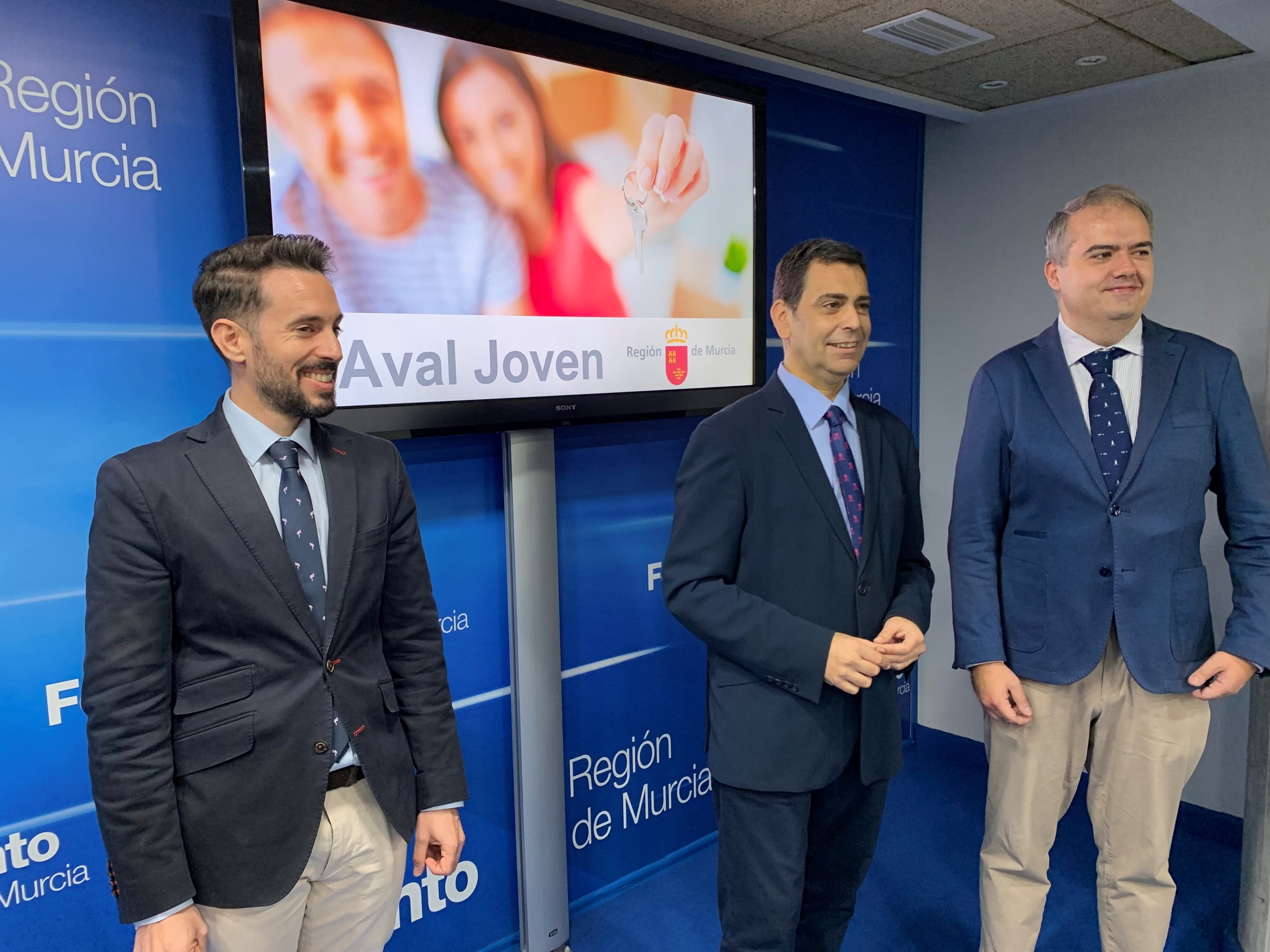 El consejero de Fomento e Infraestructuras, José Ramón Díez de Revenga, acompañado por los directores del Instituto de Crédito y Finanzas (Icref) y Vivienda, Nicolás Gonzálvez y José Francisco Lajara respectivamente, informaron hoy que un total de 356 jóvenes tienen su primera vivienda gracias a la línea de avales pionera en el ámbito nacional, enmarcada en la estrategia 'Haciendo Hogar´.