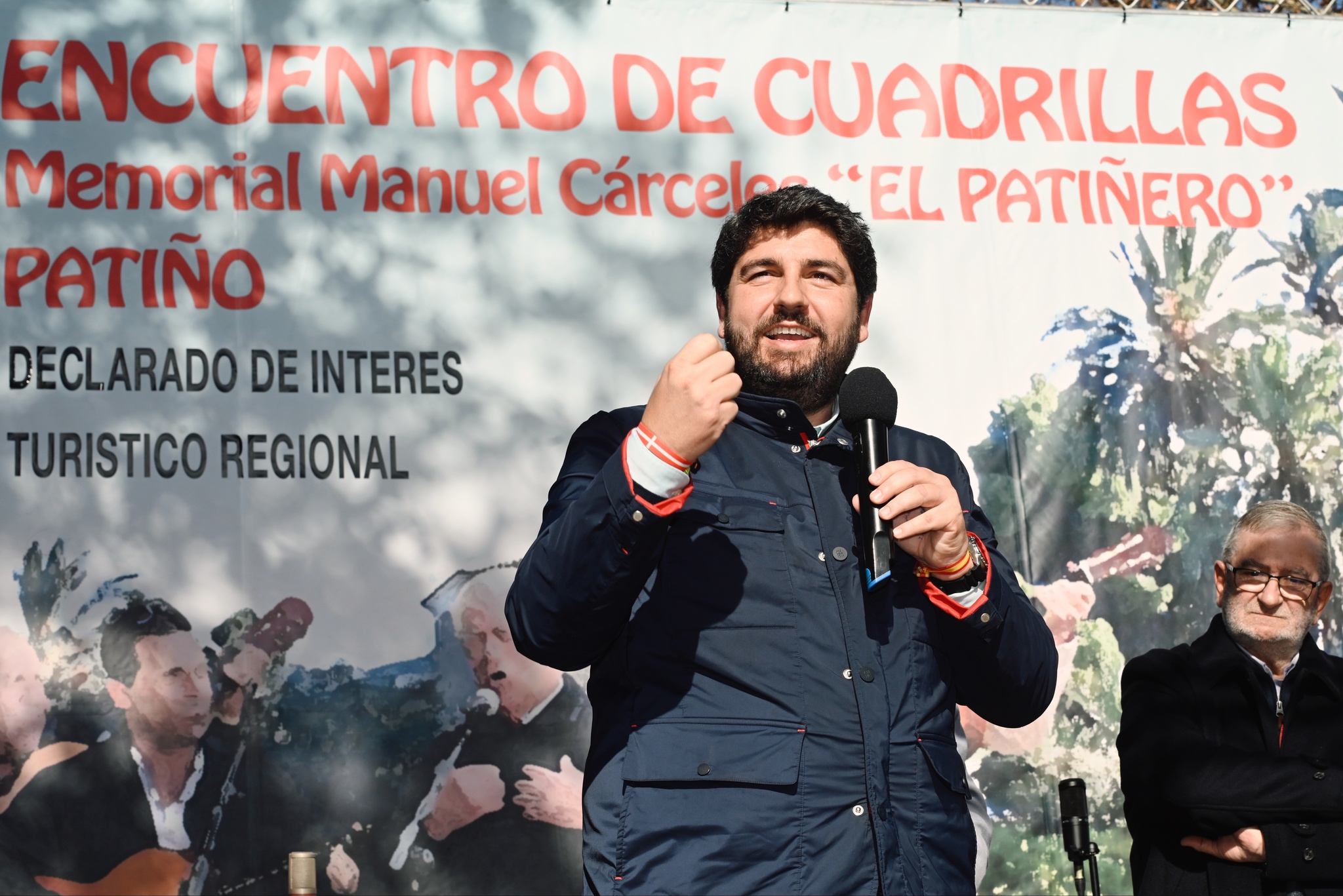El presidente de la Comunidad, Fernando López Miras, asistió hoy a la trigésimo cuarta edición del Encuentro de Cuadrillas que se celebra en la pedanía murciana de Patiño, donde resaltó que esta jornada es “una tradición que forma parte de nuestra cultura y nuestra identidad”.