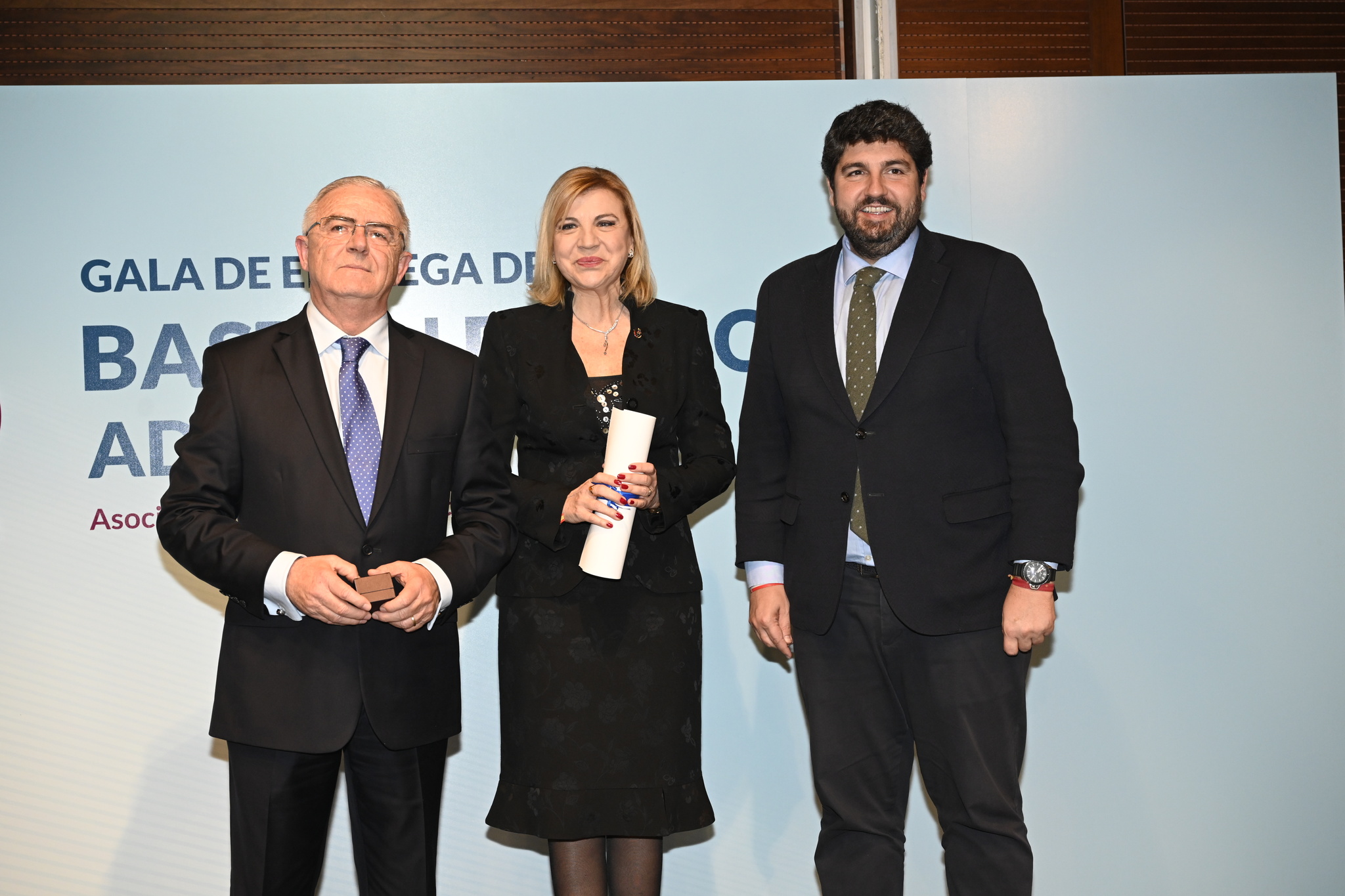 El presidente de la Comunidad, Fernando López Miras, asistió anoche al acto de entrega del Bastón de Oro de la Asociación de Dependencia de la Región de Murcia (Adermur) a Violante Tomás, un galardón que reconoce el trabajo por el bienestar de las personas mayores y dependientes de la que fuera consejera de Política Social del Gobierno regional entre 2015 y 2019.