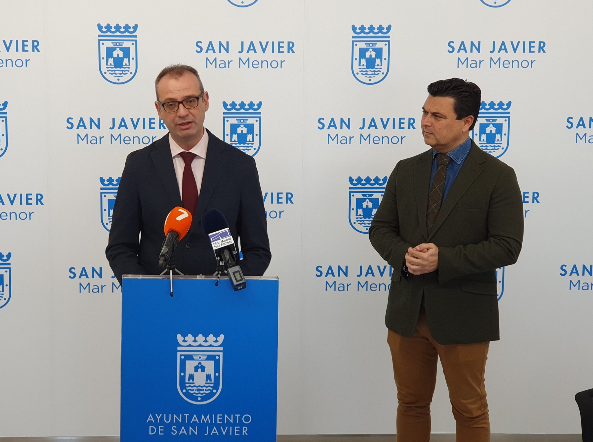 El consejero Víctor Marín y el alcalde de San Javier, en su comparecencia ante los medios