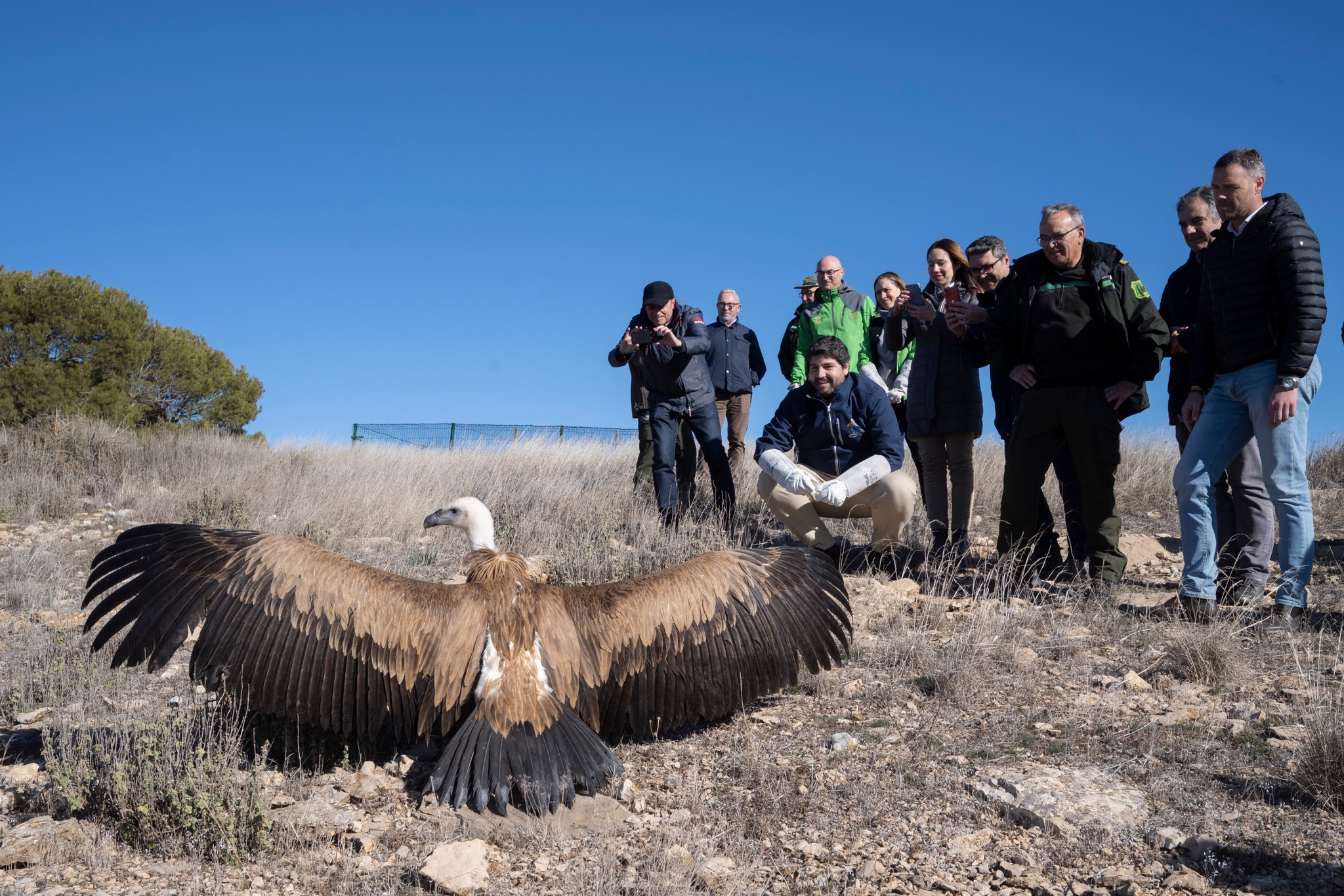 López Miras libera dos ejemplares de buitre leonado en la sierra caravaqueña de Mojantes