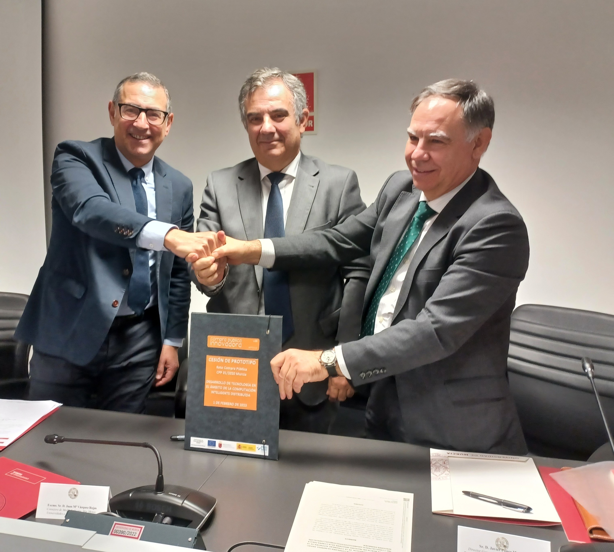 El consejero de Medio Ambiente, Mar Menor, Universidades e Investigación tras la firma del acta de recepción y entrega de dos prototipos del proyecto Smart Campus
