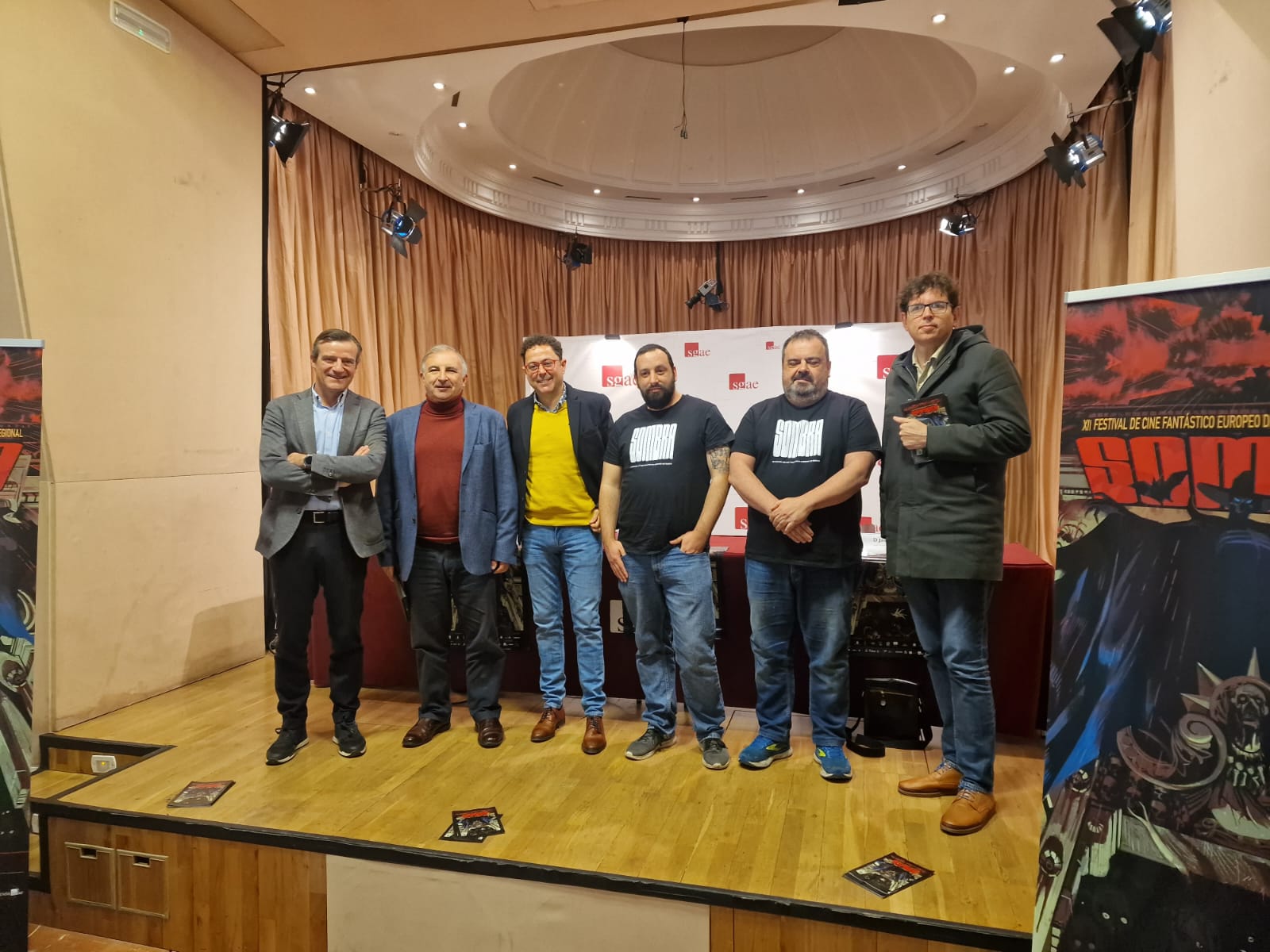 , Manuel Cebrián, con los organizadores y patrocinadores del festival, tras su presentación en la