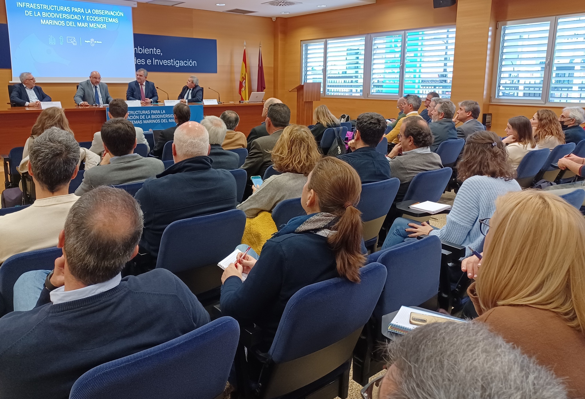 El consejero de Medio Ambiente, Mar Menor, Universidades e Investigación, Juan María Vázquez, durante la inauguración de la jornada 'Infraestructuras para la observación de la biodiversidad y ecosistemas marinos del Mar Menor'