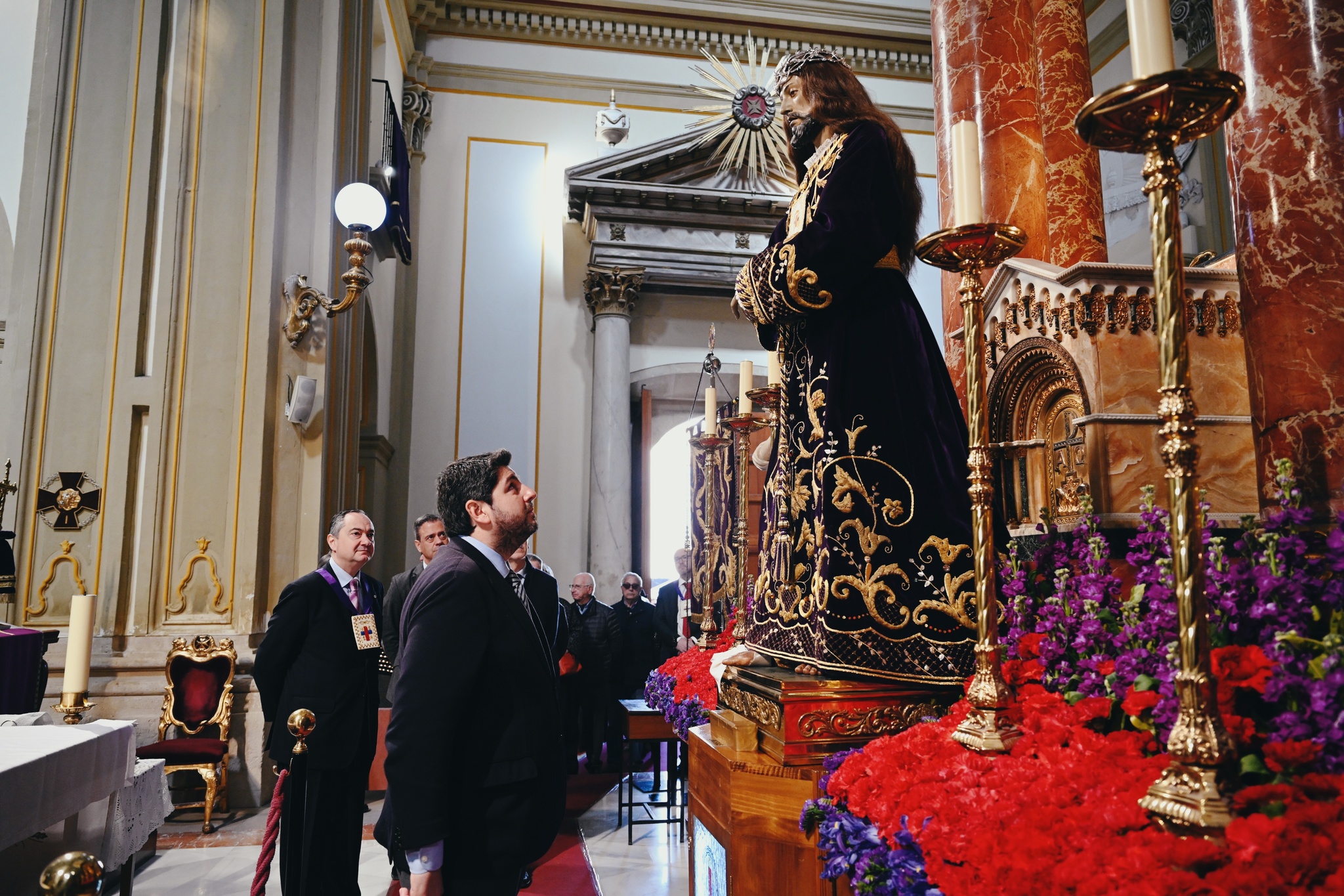 López Miras asiste al tradicional besapié del Cristo del Rescate, "un preludio de la Semana Santa que ya se acerca"