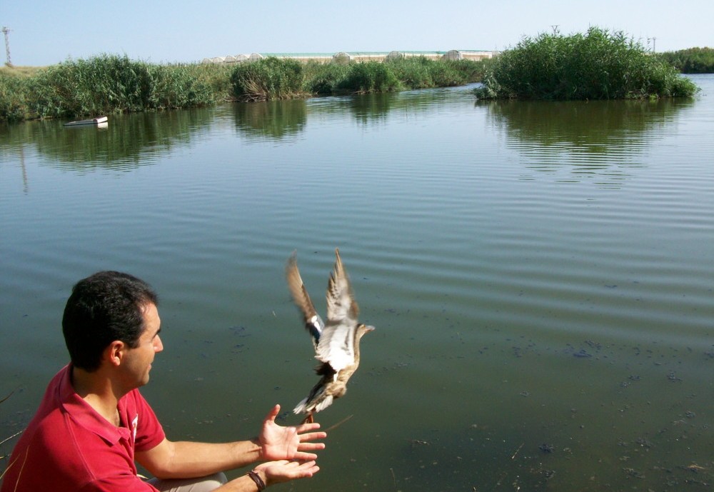 Uno de los técnicos del Centro de Recuperación de El Valle durante la liberación de aves en la Rambla de las Moreras, en Mazarrón.