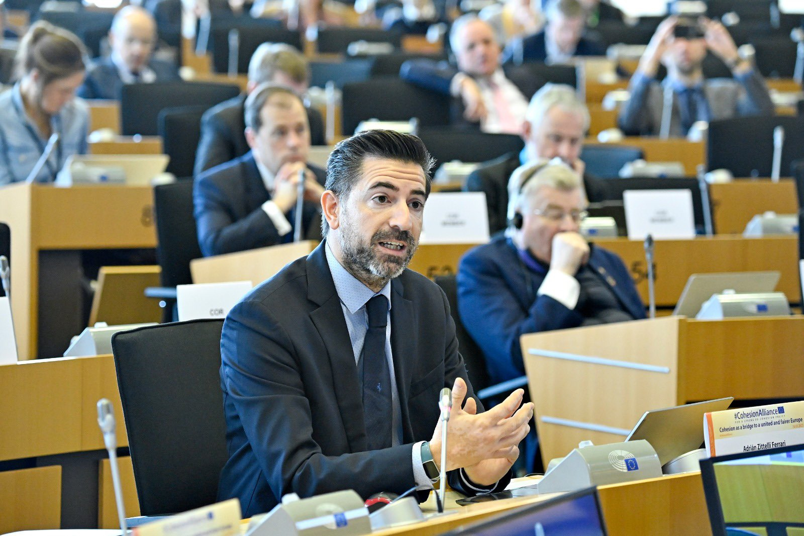 El director general de Unión Europea, Adrián Zittelli, durante su intervención en la sesión plenaria del Comité Europeo de las Regiones