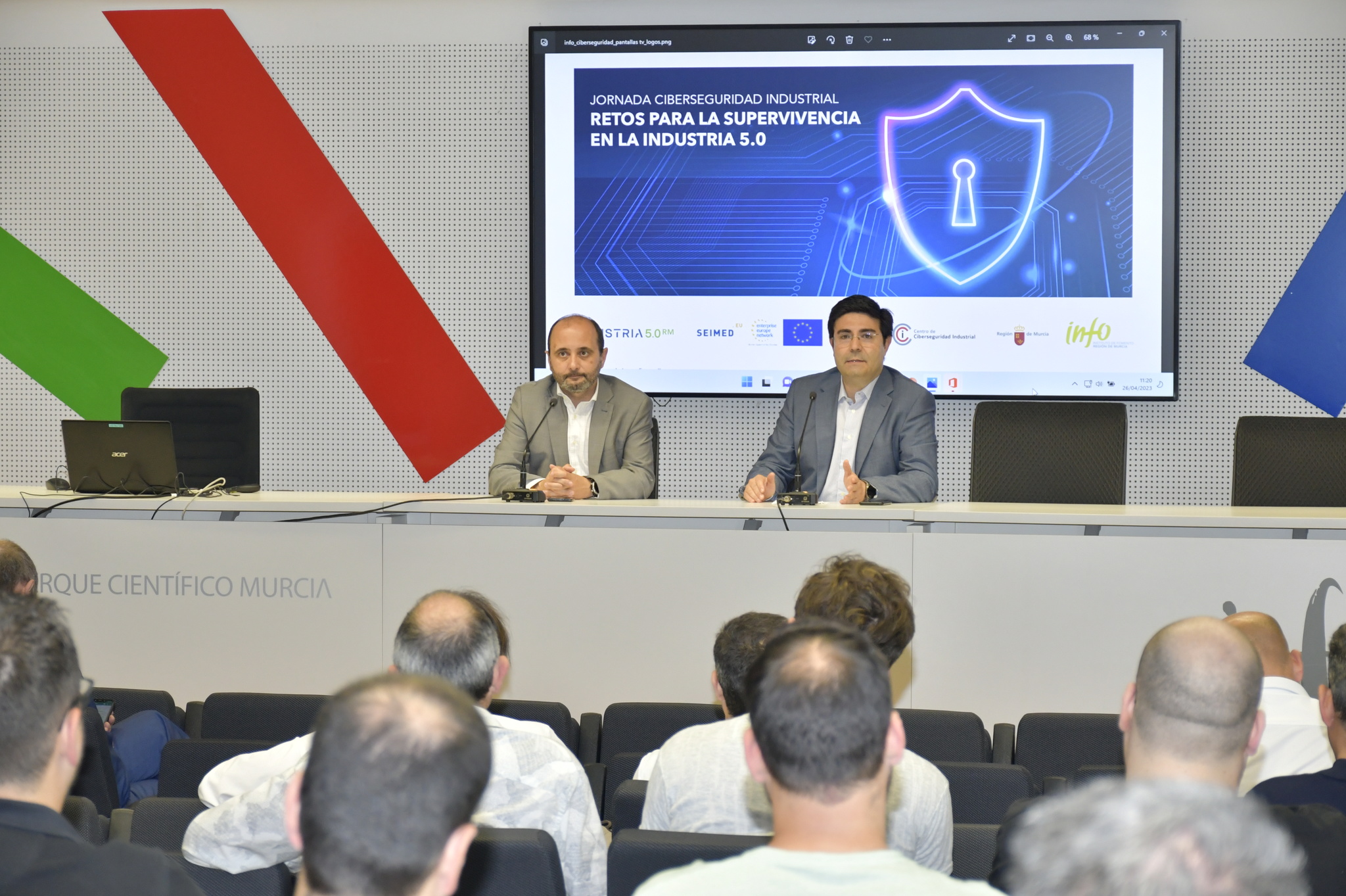 , Joaquín Gómez (i), durante la jornada de ciberseguridad.