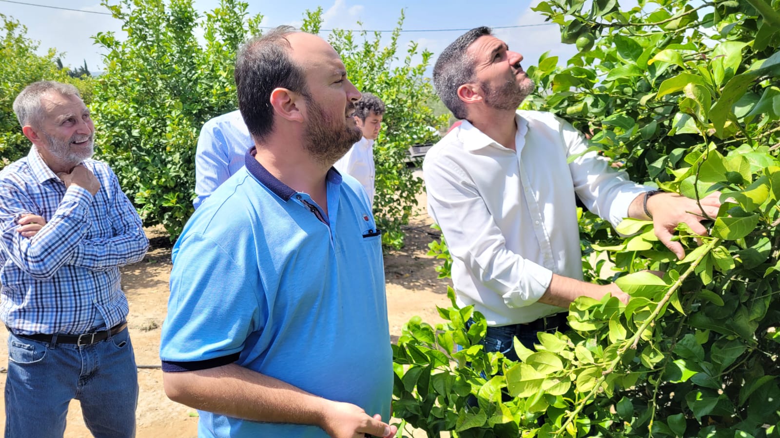 El consejero de Agua, Agricultura, Ganadería y Pesca, Antonio Luengo, en la visita a la zona del campo de Molina de Segura afectada por el granizo y la lluvia torrencial de ayer