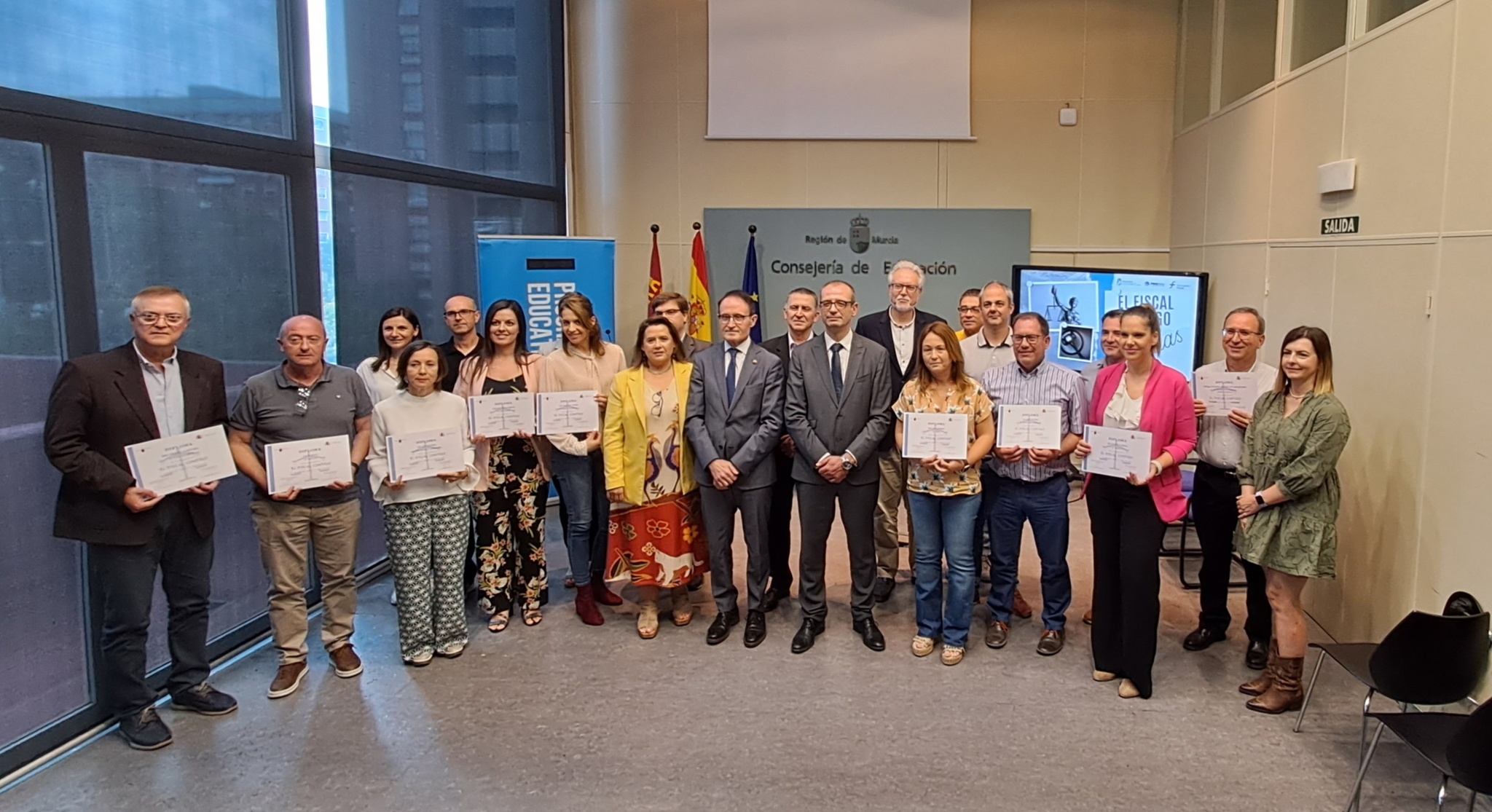 El consejero en funciones de Educación, Formación Profesional y Empleo, Víctor Marín, y el Fiscal Superior de la Región de Murcia, José Luis Díaz Manzanera, entregaron los diplomas a los centros educativos participantes en las charlas 'El fiscal contigo'.