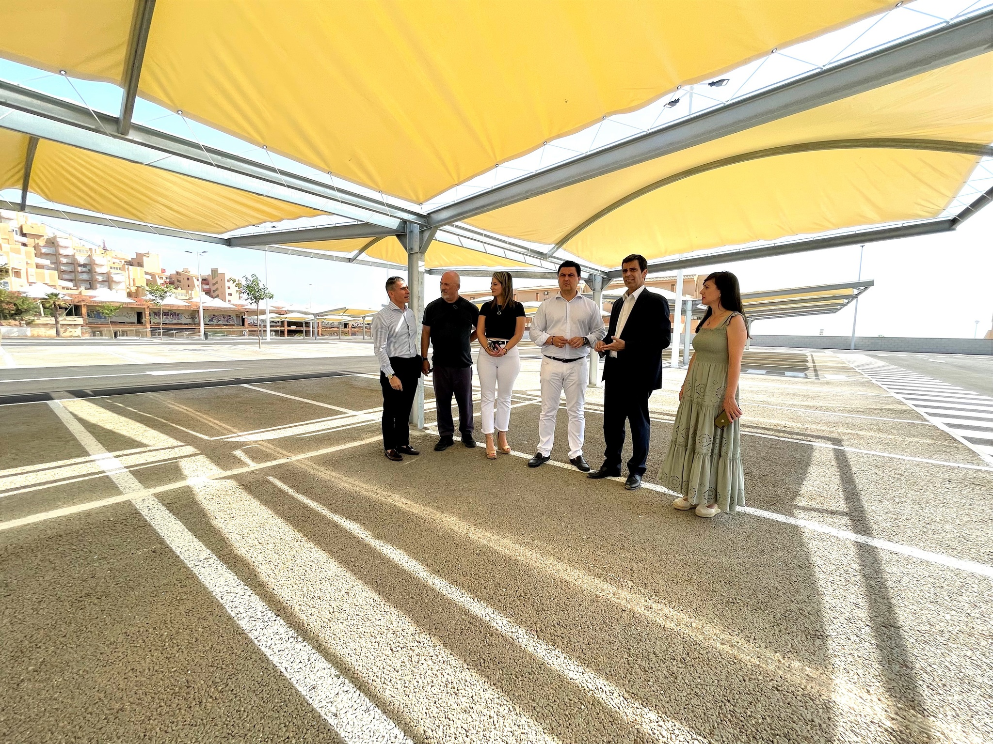 El consejero en funciones de Fomento e Infraestructuras, José Ramón Díez de Revenga, junto con el alcalde de San Javier, José Miguel Luengo, durante su visita a las obras del nuevo aparcamiento disuasorio de La Manga enmarcadas en la EDUSI 'La Manga 365' (2 de 2)
