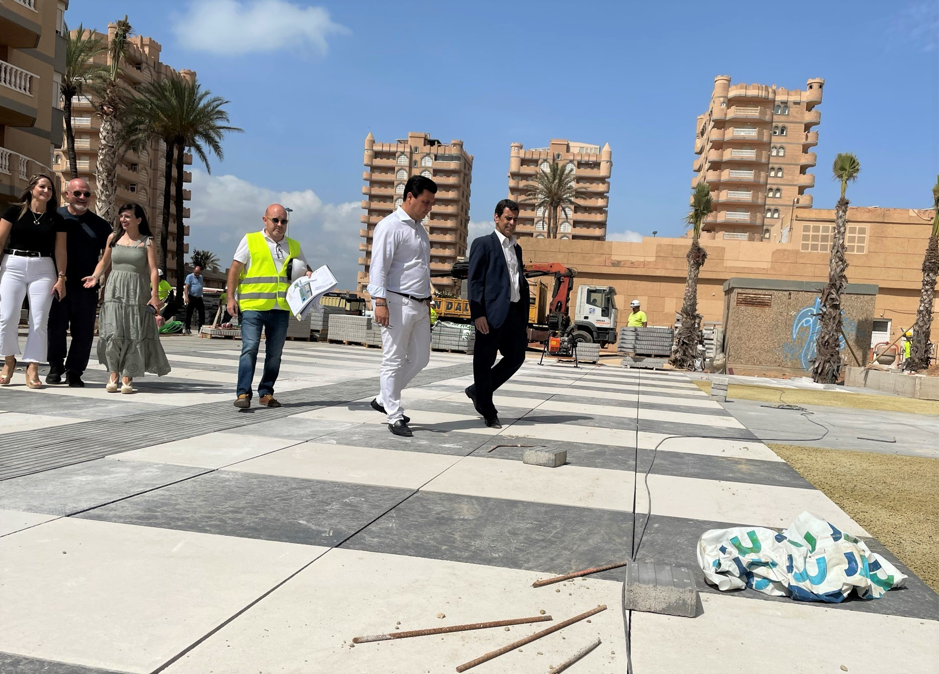 El consejero en funciones de Fomento e Infraestructuras, José Ramón Díez de Revenga, junto con el alcalde de San Javier, José Miguel Luengo, durante su visita a las obras de la Plaza Castillos del Mar enmarcada en la estrategia EDUSI 'La Manga 365' (2)