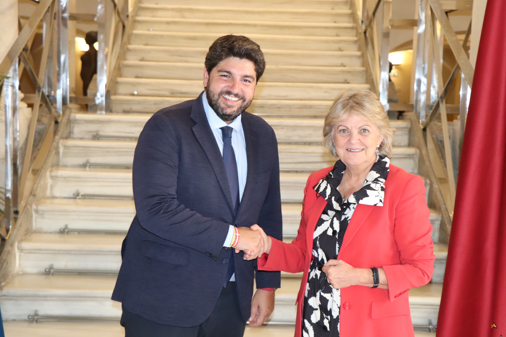 El presidente de la Región de Murcia, Fernando López Miras, recibe a la comisaria europea de Cohesión y Reformas, Elisa Ferreira/2