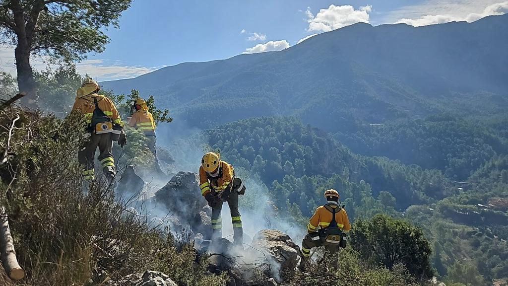Las Brigadas Forestales de la Región de Murcia combaten el fuego esta mañana en Montitxelvo