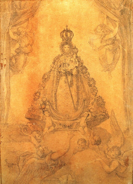 Dibujo de la Virgen de la Fuensanta, realizado por Rosales y que se conserva en el Museo de Bellas Artes.