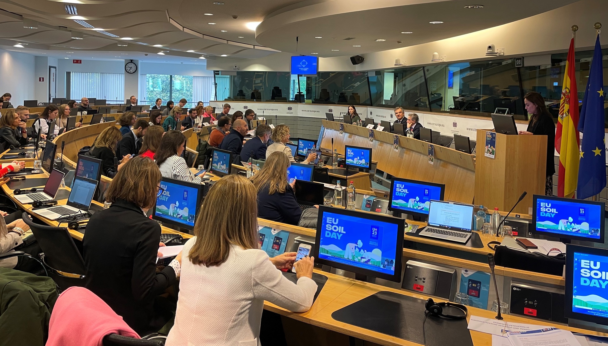 El consejero de Medio Ambiente, Universidades, Investigación y Mar Menor, Juan María Vázquez, durante la inauguración en Bruselas del EU Soil Day, una conferencia impulsada por la Región