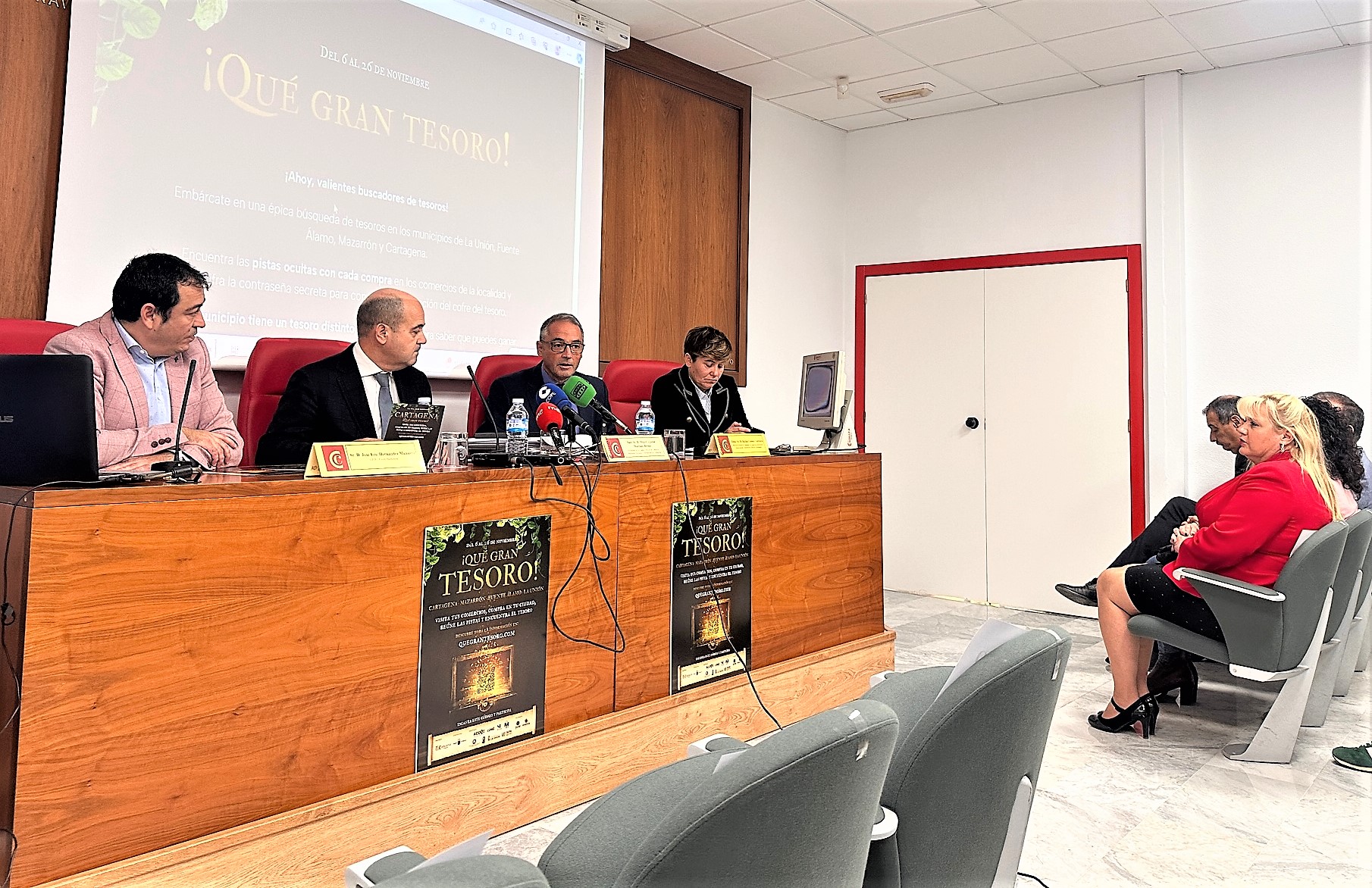 El director general de Impulso al Comercio, Innovación Empresarial e Industrias y Oficios Artesanales, Rafael Gómez, participó esta mañana en la presentación de la campaña de dinamización comercial ‘¡Qué gran tesoro!’, impulsada por la Cámara de Comercio de Cartagena para los municipios de Cartagena, Fuente Álamo, La Unión y Mazarrón.