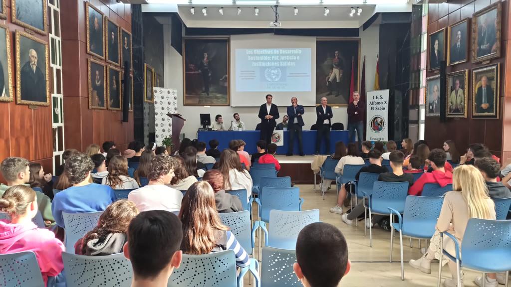 La importancia de la cooperación internacional y el rol de los jóvenes en el desarrollo global fue el eje central del taller de la ‘Red de educación para el desarrollo sostenible y la ciudadanía mundial’ celebrado hoy en el IES Alfonso X El Sabio, en el que participó el director general de Acción Exterior y Cooperación, Juanjo Almela, junto con el vicerrector de Responsabilidad Civil y Transparencia de la Universidad de Murcia, Longinos Marín.