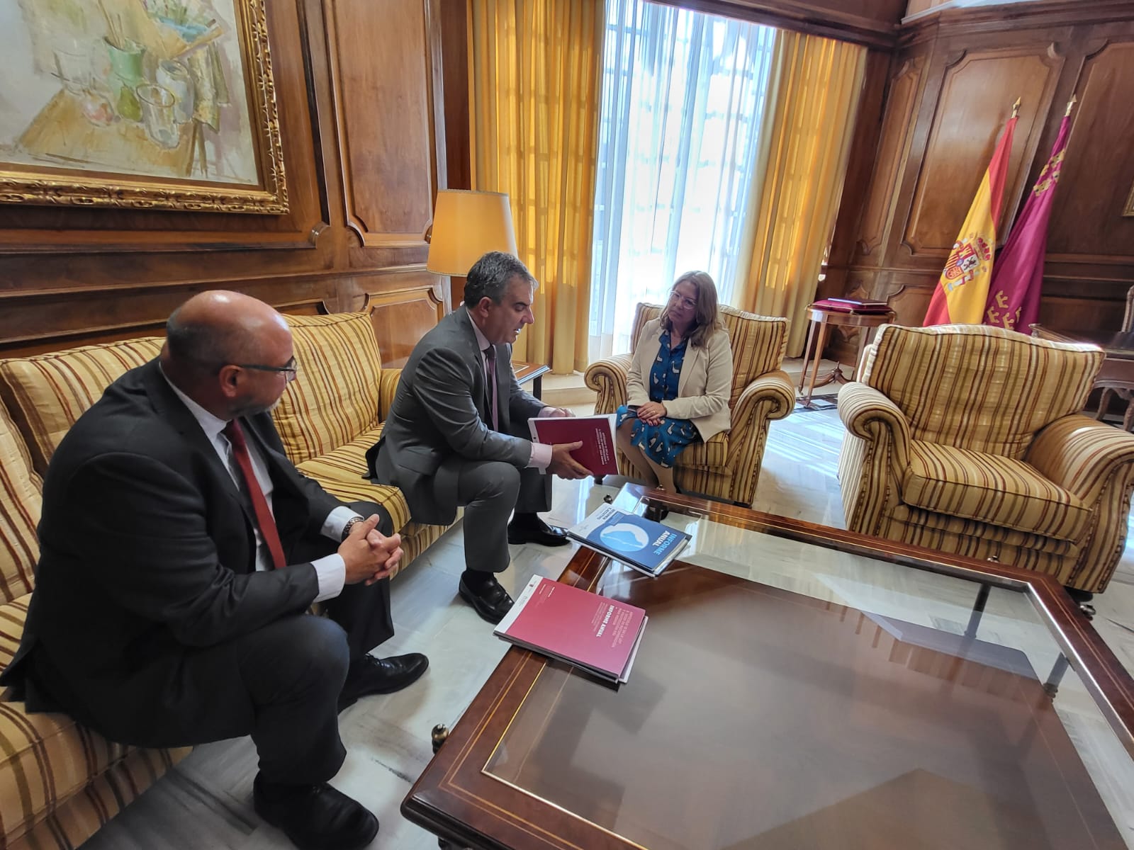 El Consejero de Medio Ambiente, Universidades, Investigación y Mar Menor, Juan María Vázquez, se reúne con la presidenta de la Asamblea Regional, Visitación Martínez, a quien entrega el informe anual de ejecución de medidas de recuperación y protección del Mar Menor