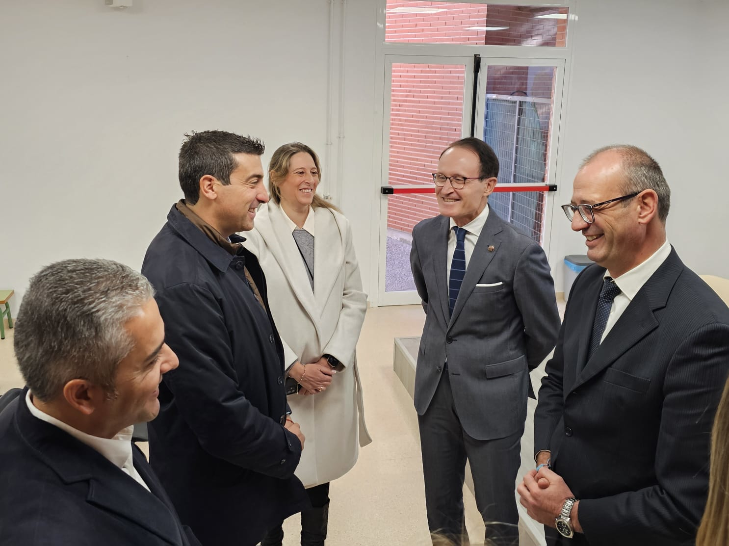 El alcalde de Blanca, Pablo Cano, el consejero de Educación, Formación Profesional y Empleo, Víctor Marín, el fiscal Superior de la Comunidad Autónoma de la Región de Murcia, José Luis Díaz Manzanera, la directora de Recursos Humanos, Planificación Educativa e Innovación, Carmen Balsas, y el director del IES Valle del Segura, Moisés Aguilar, durante la presentación de la primera charla del programa educativo 'El fiscal contigo´.