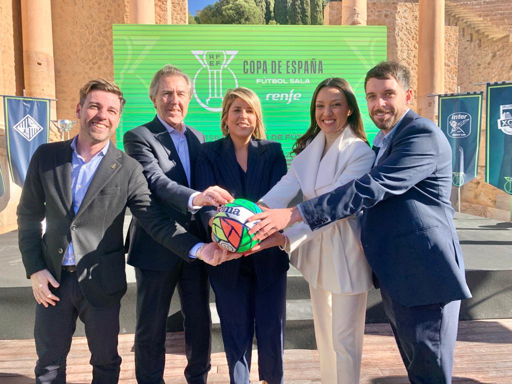 La consejera Carmen Conesa, la alcaldesa de Cartagena, Noelia Arroyo, y autoridades asistentes al sorteo de la Copa de España de Fútbol-Sala
