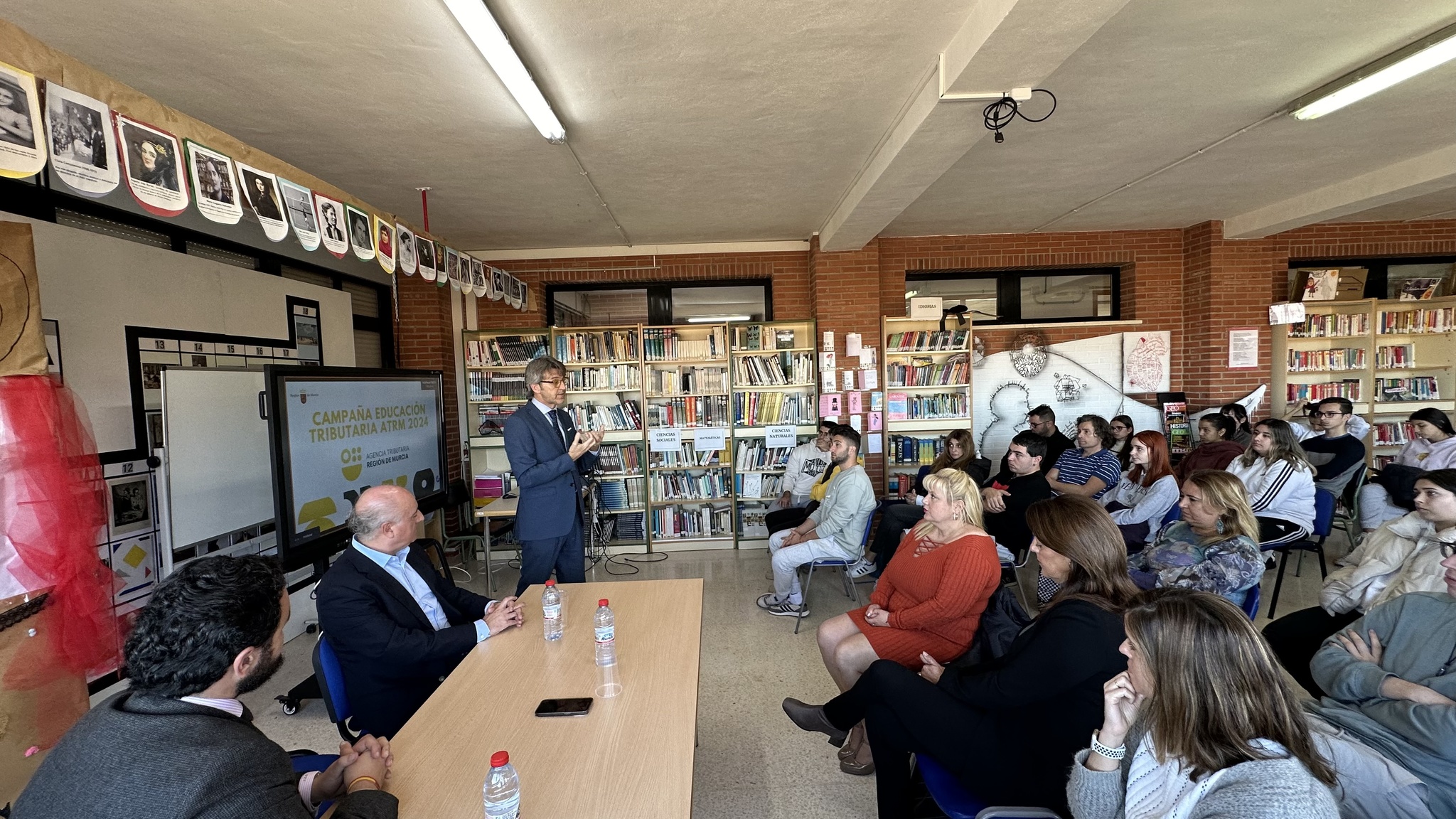 El consejero de Economía, Hacienda y Empresa, Luis Alberto Marín, durante una charla financiera en el IES Sierra Minera de La Unión
