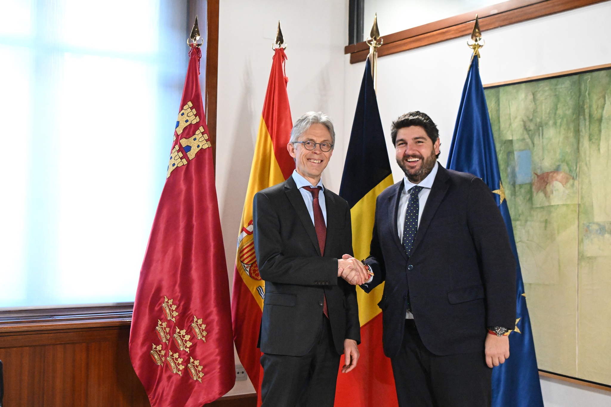 El presidente de la Comunidad, Fernando López Miras, recibe al embajador de Bélgica en España, Gerad Cockx