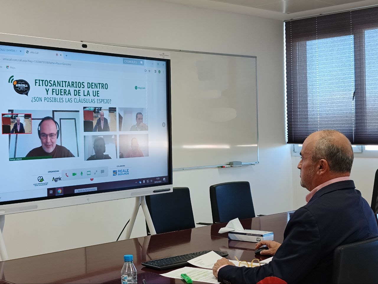 El uso de Fitosanitarios dentro y fuera de la UE ha sido el objeto de la jornada on line ‘Agrícola Café’ en la que participó hoy el secretario general de la Consejería de Agua, Agricultura, Ganadería y Pesca, Francisco González Zapater, en la que varios expertos del sector debatieron sobre la importancia de que se impongan cláusulas espejo a los productos de terceros países que son comercializados en Europa.