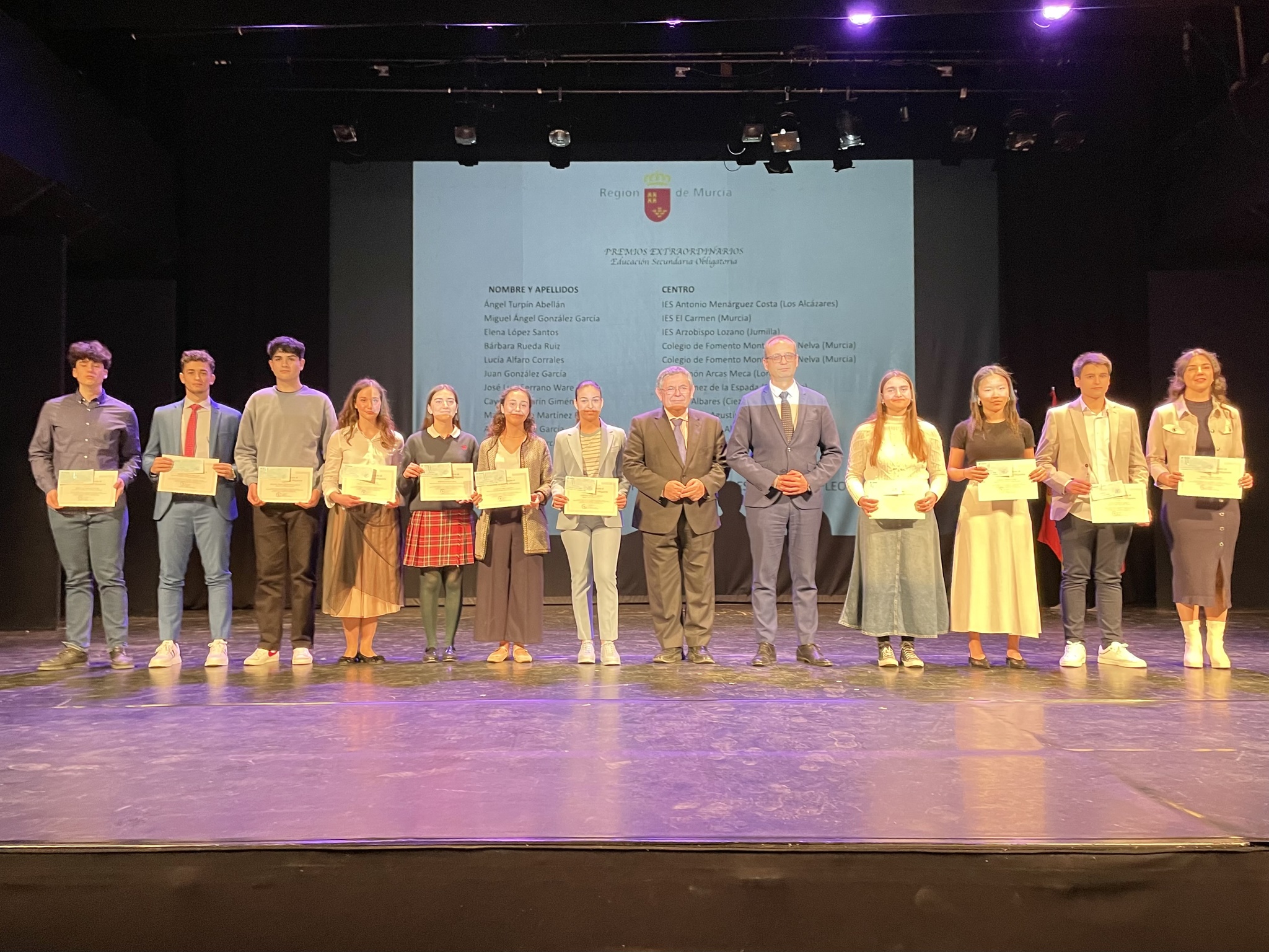 El consejero de Educación, Formación Profesional y Empleo, Víctor Marín, con los ganadores de los Premios Extraordinarios de Educación Secundaria Obligatoria del curso 2022-2023