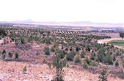 Forestación de Encinas y Pinos con otras especies acompañantes, en la pedanía de La Paca (Lorca). (Junio 2003)