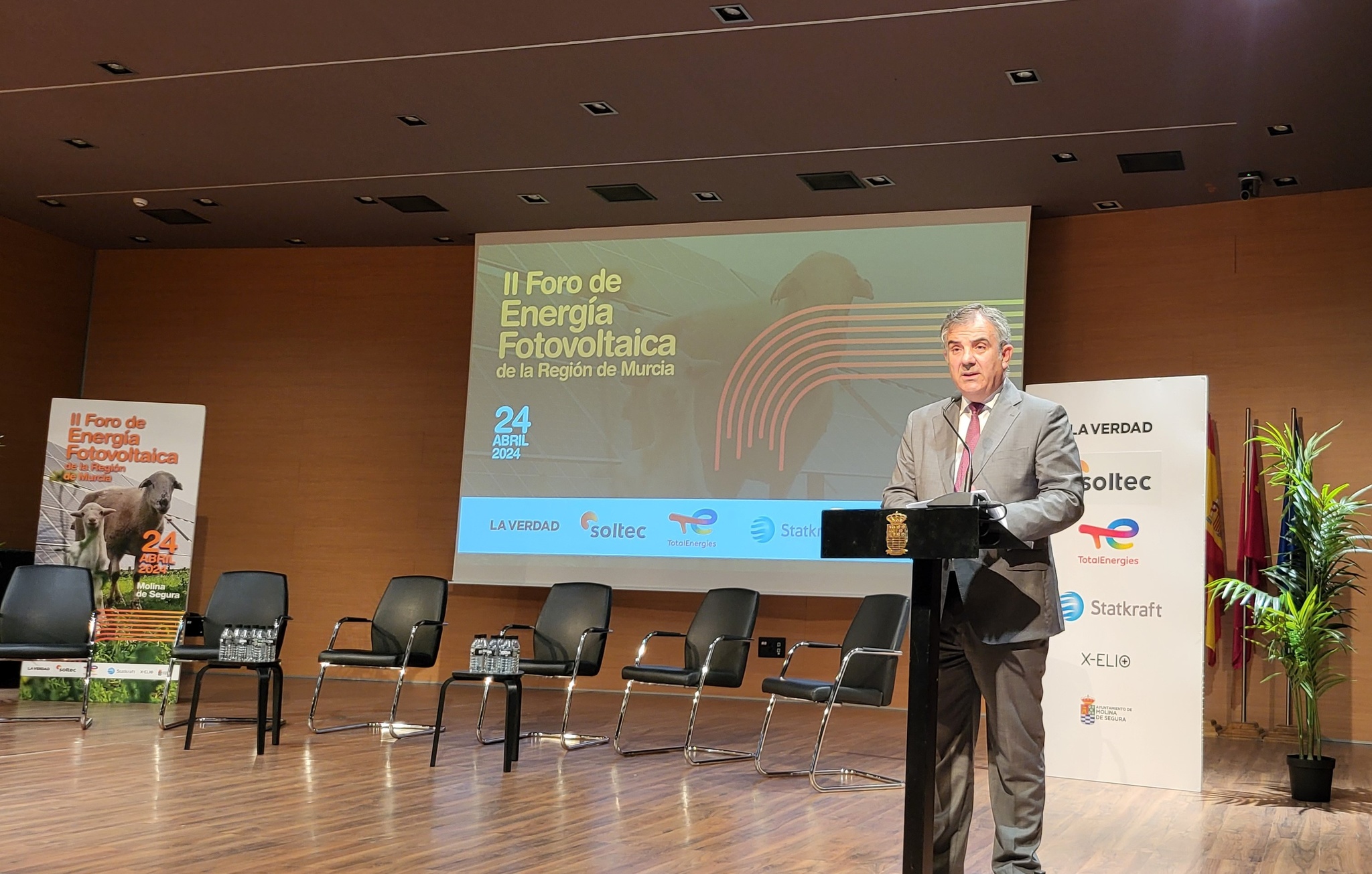 El consejero de Medio Ambiente recuerda en el Foro de la Energía Solar Fotovoltaica que "somos líderes nacionales en el recurso sol y lo debemos aprovechar"