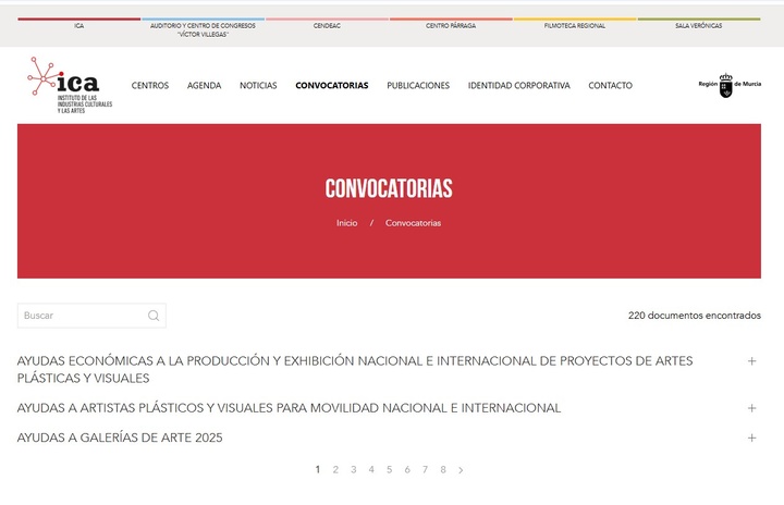 Imagen de la sección 'Convocatorias' de la página web del Instituto de las Industrias Culturales y las Artes