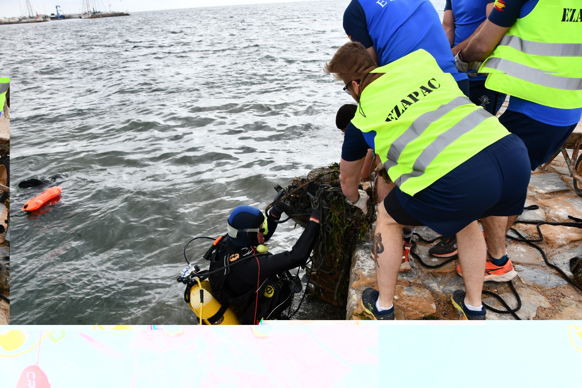 Limpieza de los fondos marinos llevada a cabo recientemente en la zona militar de San Javier por parte de voluntarios de Hippocampus, ADAPT y uniformados de la Base Aérea de Alcantarilla, la Escuela Militar de Paracaidismo y el Escuadrón de Zapadores Paracaidistas.
